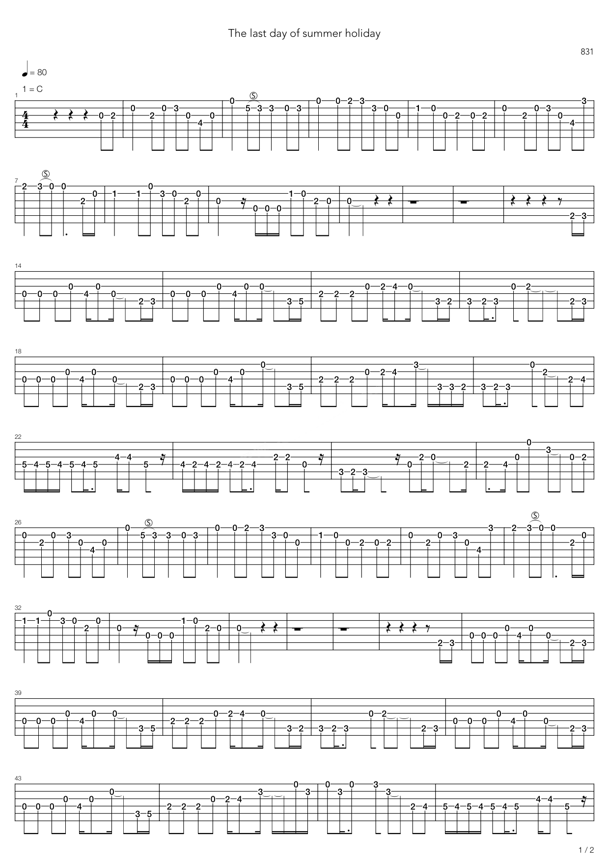 最后的831吉他谱 - 八三夭乐团 - 吉他弹唱谱