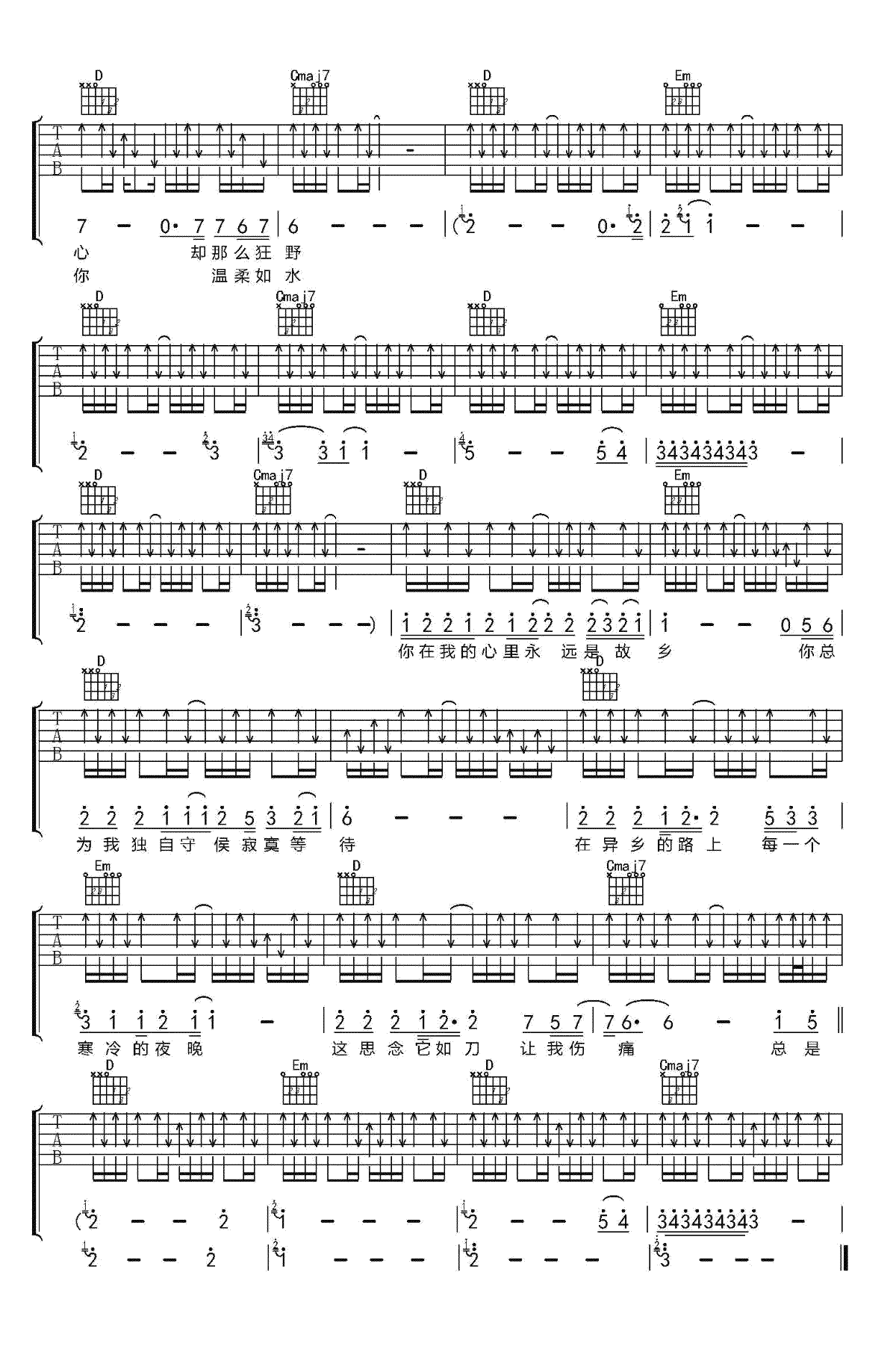 故乡吉他谱 - 许巍 - 吉他独奏谱