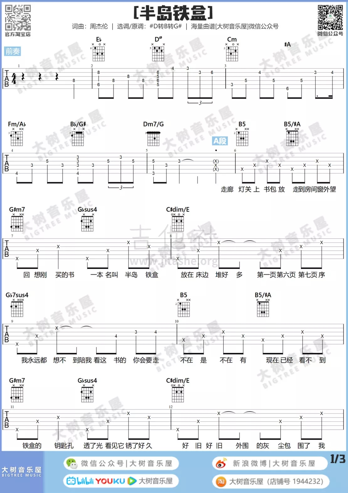 当前位置:琴谱网>吉他弹唱>半岛铁盒