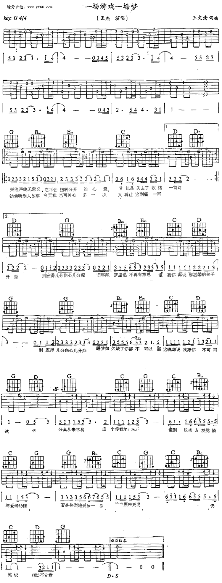 当前位置:琴谱网>吉他弹唱>一场游戏一场梦