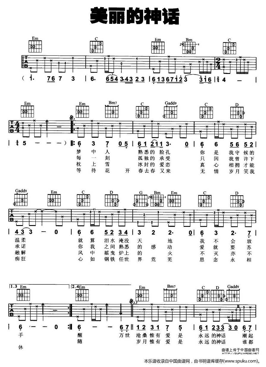 当前位置:琴谱网>吉他弹唱>美丽的神话