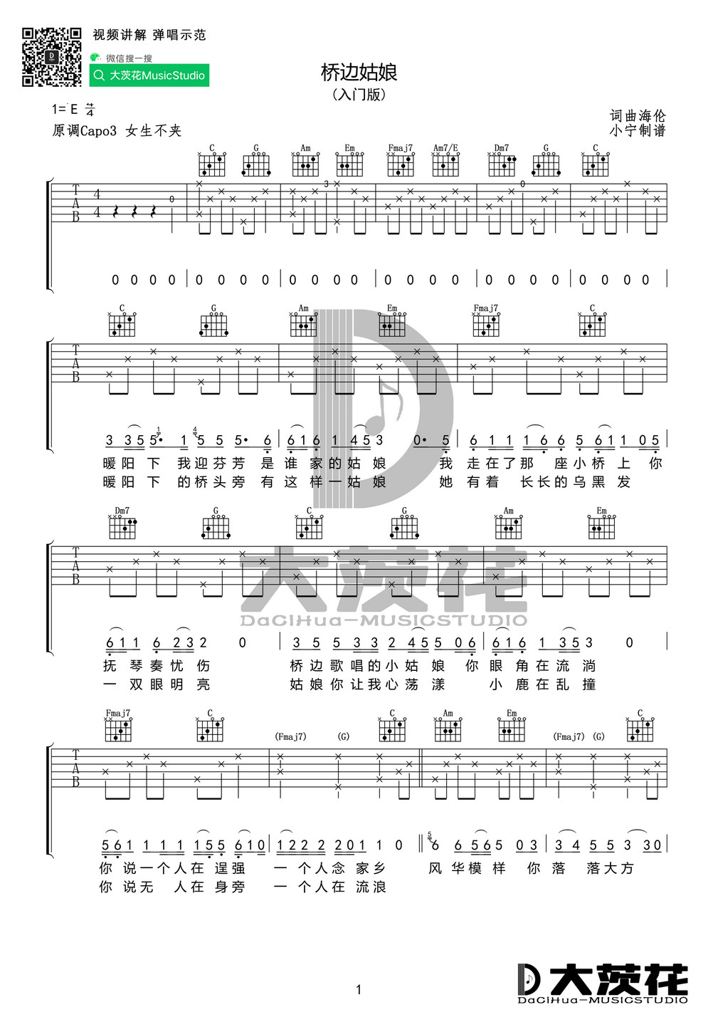桥边姑娘吉他谱 - 海伦 - 吉他弹唱谱