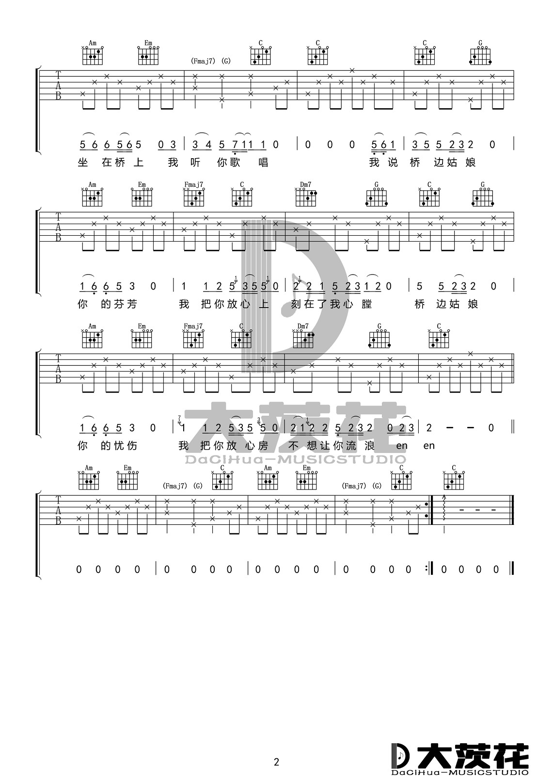 当前位置:琴谱网>吉他弹唱>桥边姑娘