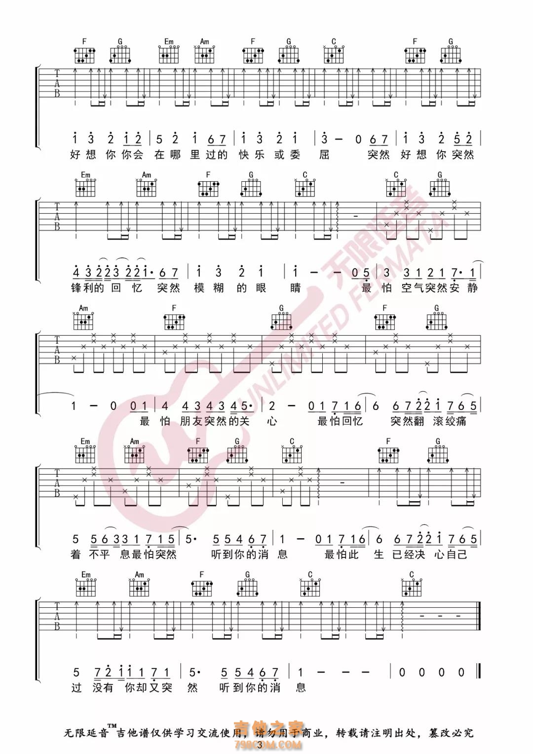 当前位置:琴谱网>吉他弹唱>突然好想你