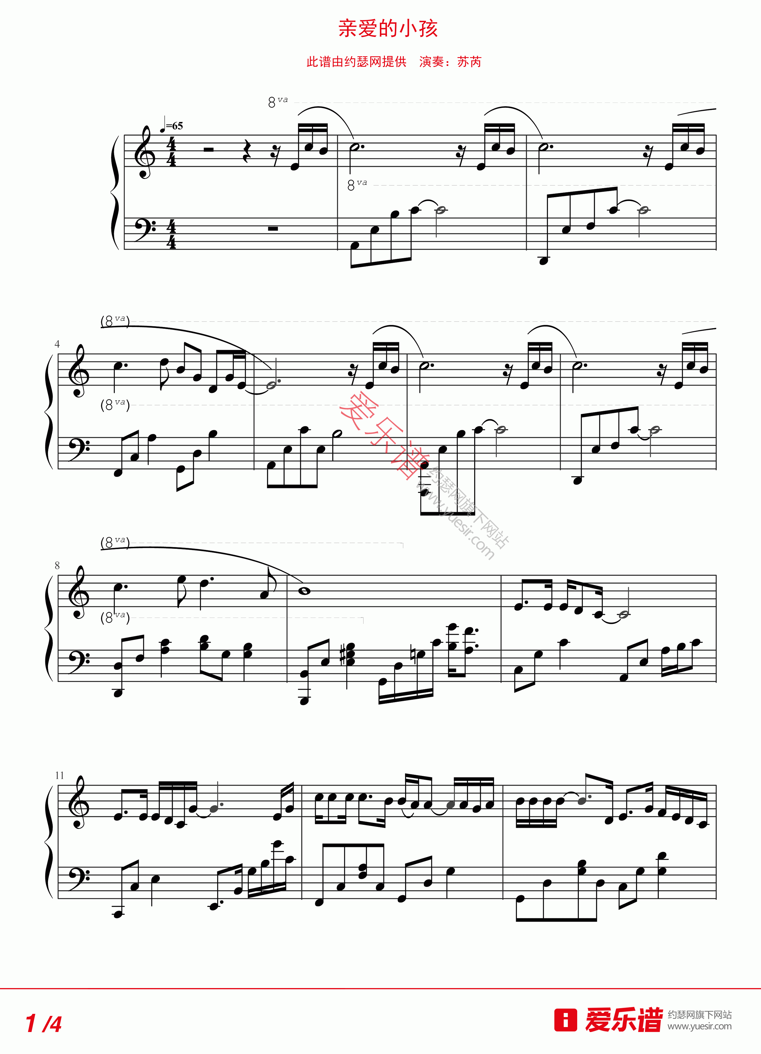 琴谱网为您精心推荐 亲爱的小孩 高清图谱