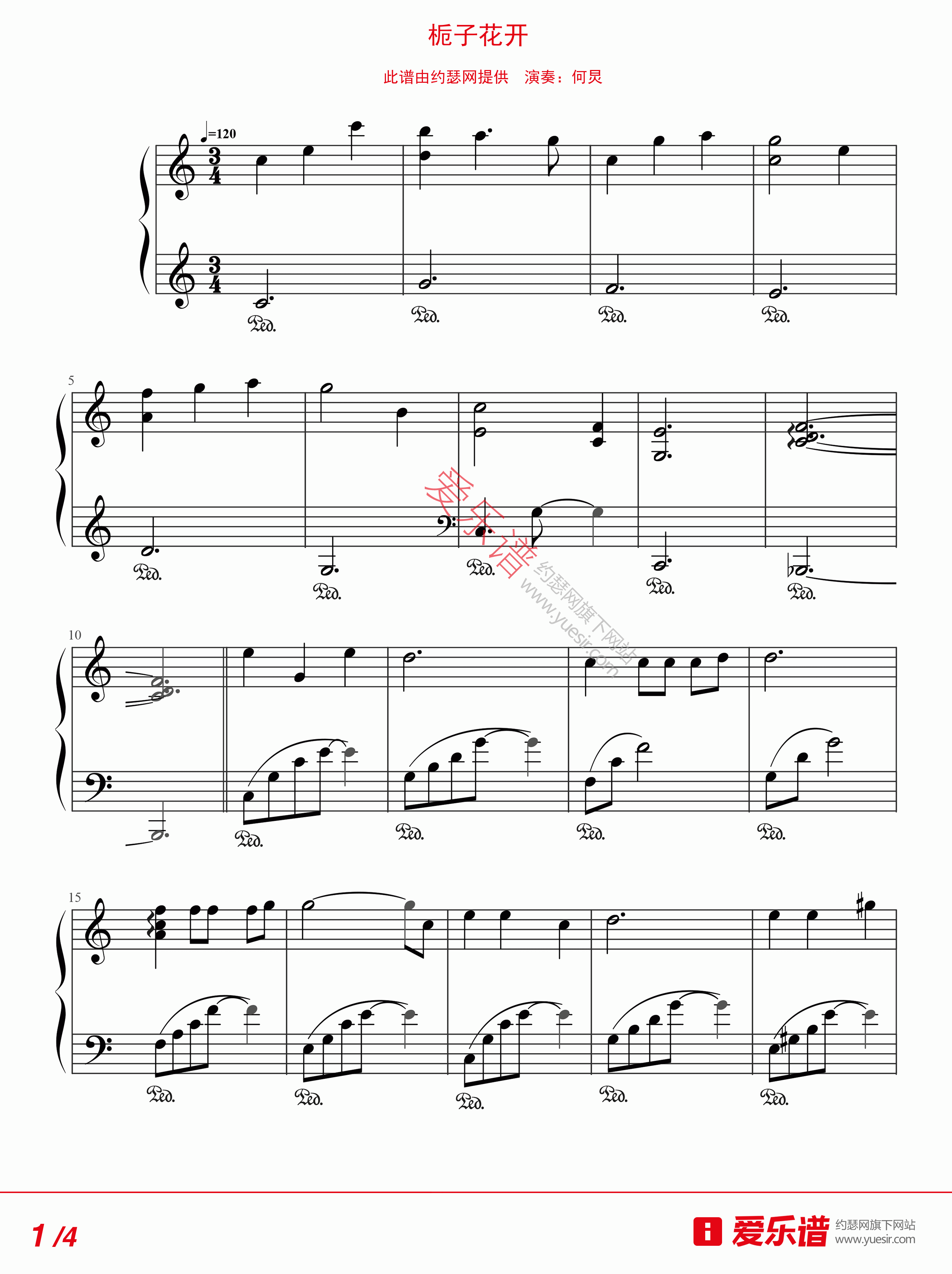 琴谱网为您精心推荐 栀子花开 高清图谱