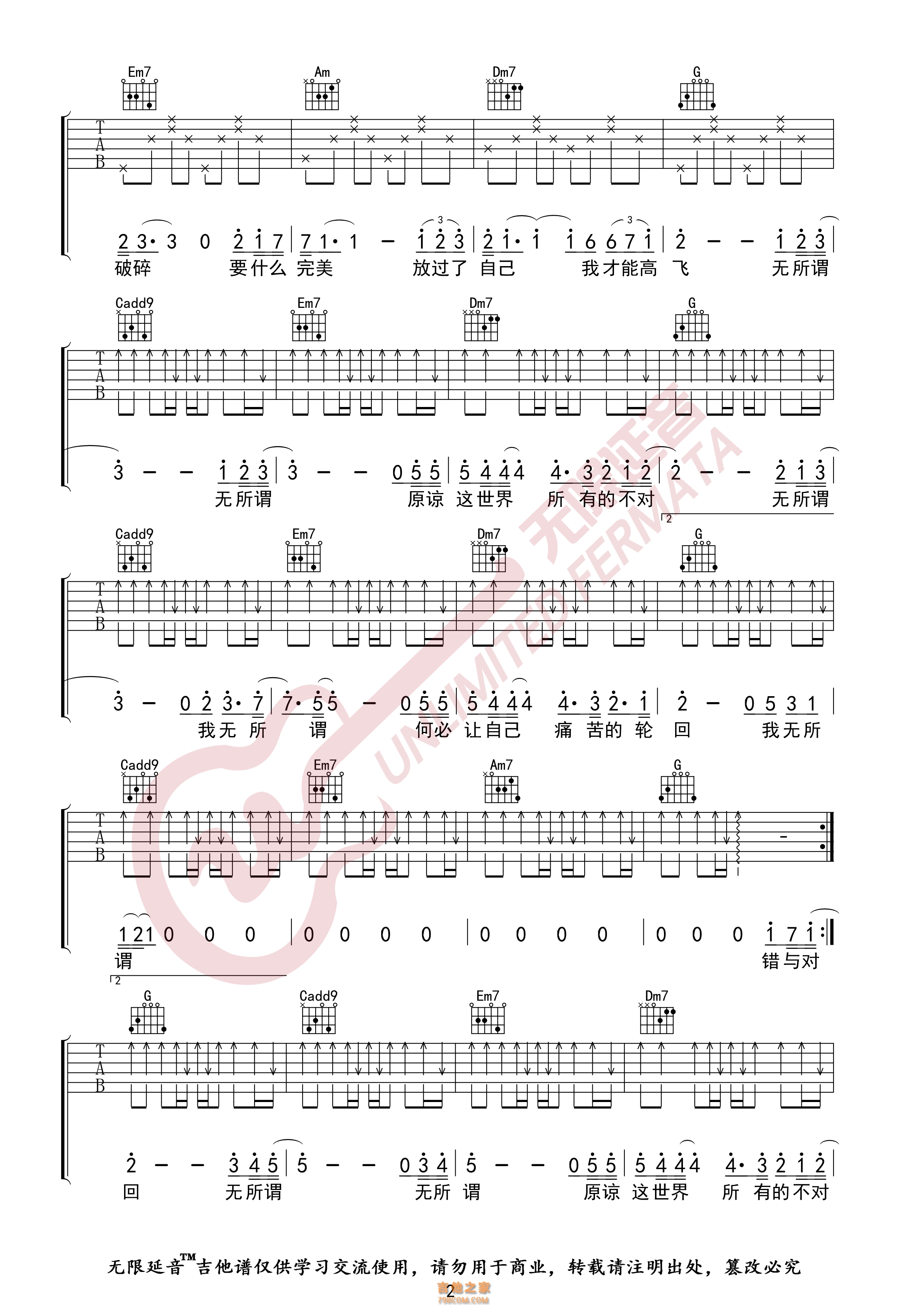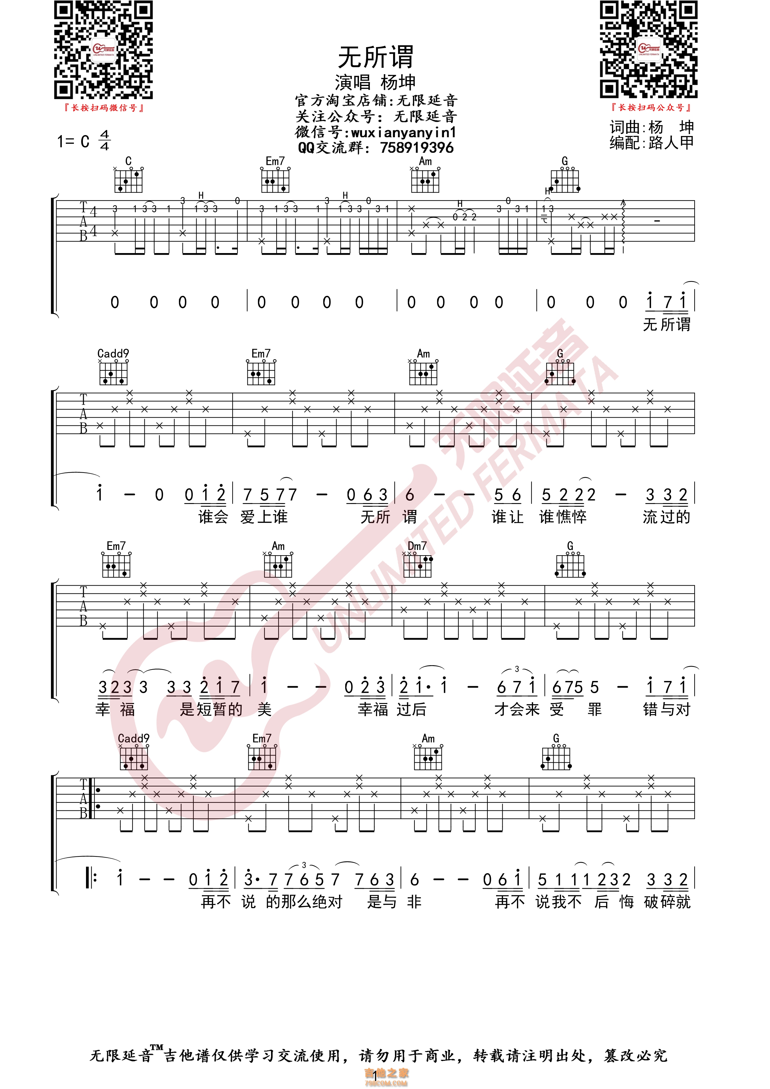 当前位置:琴谱网>吉他弹唱>无所谓