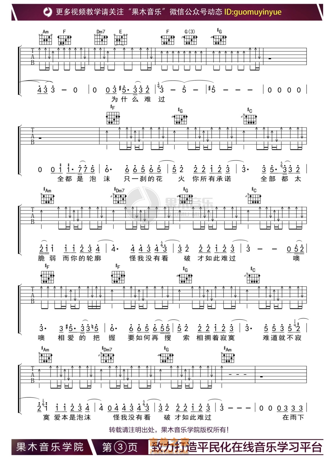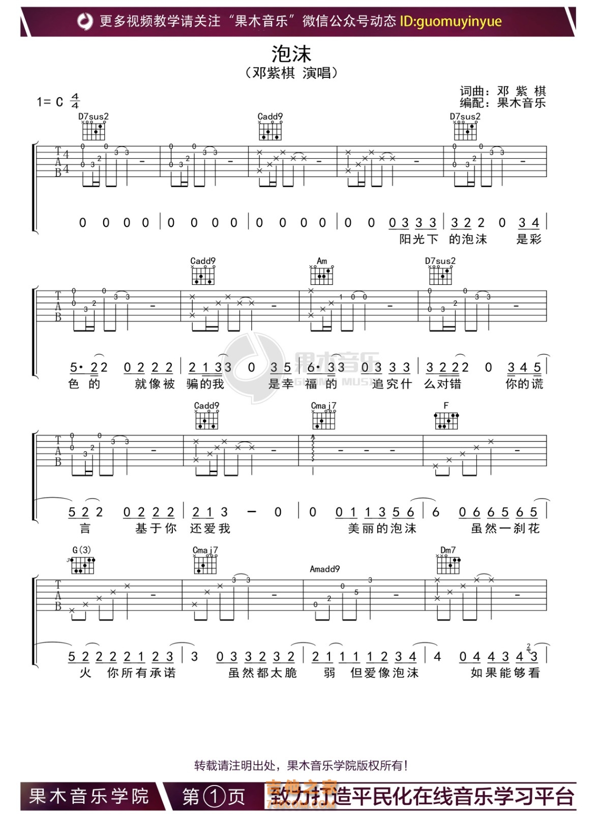 泡沫吉他谱 - 吉他弹唱谱
