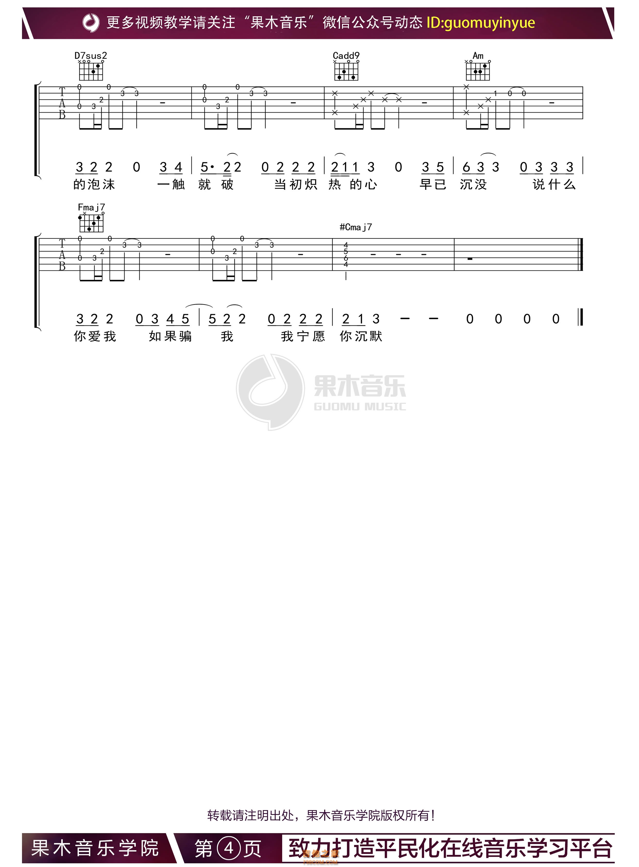 当前位置:琴谱网>吉他弹唱>泡沫