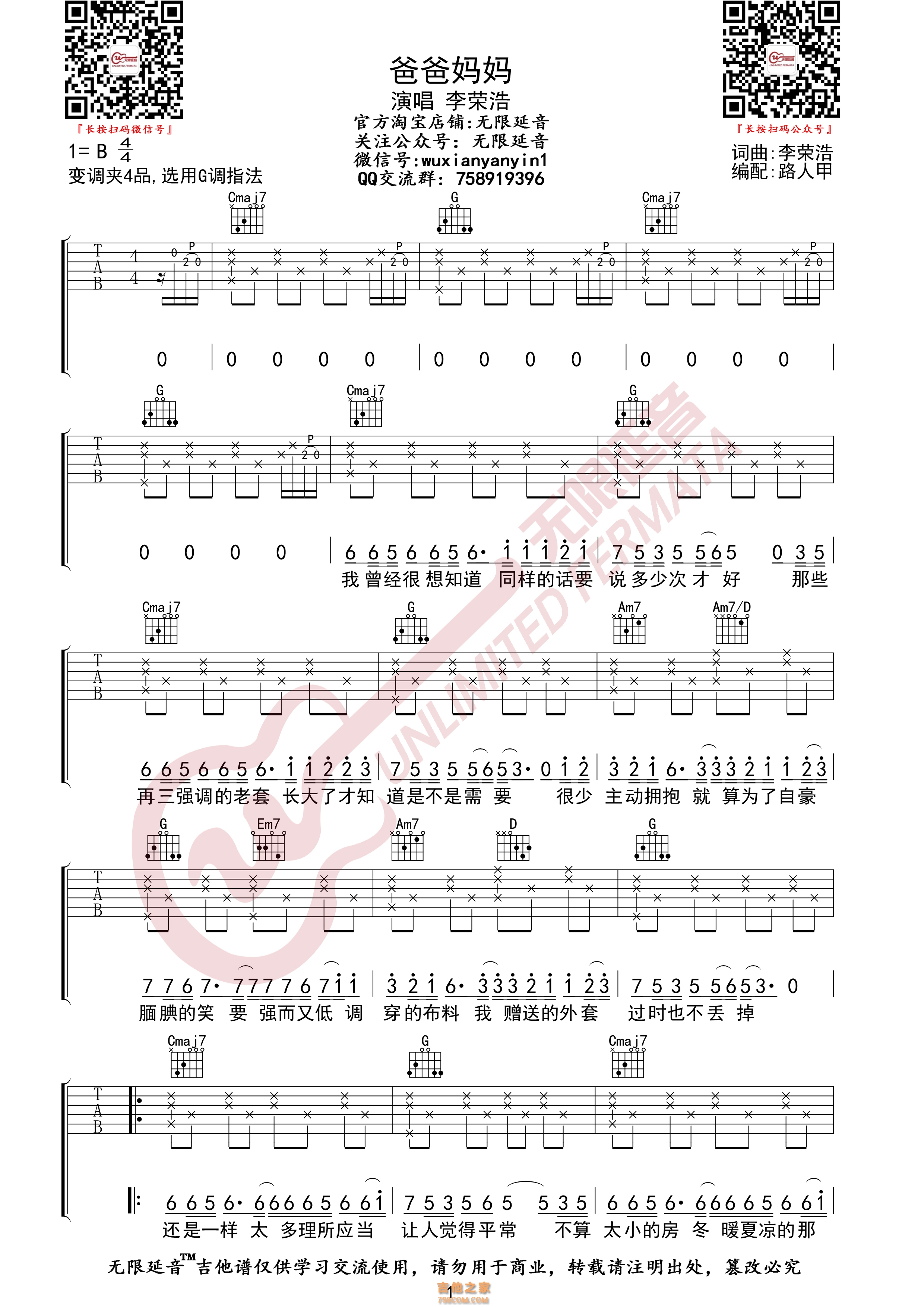 爸爸妈妈吉他谱 - 吉他弹唱谱