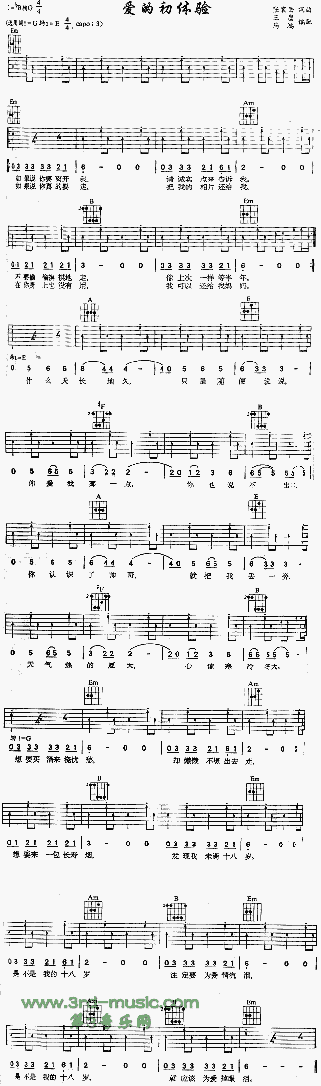 当前位置:琴谱网>吉他弹唱>爱的初体验