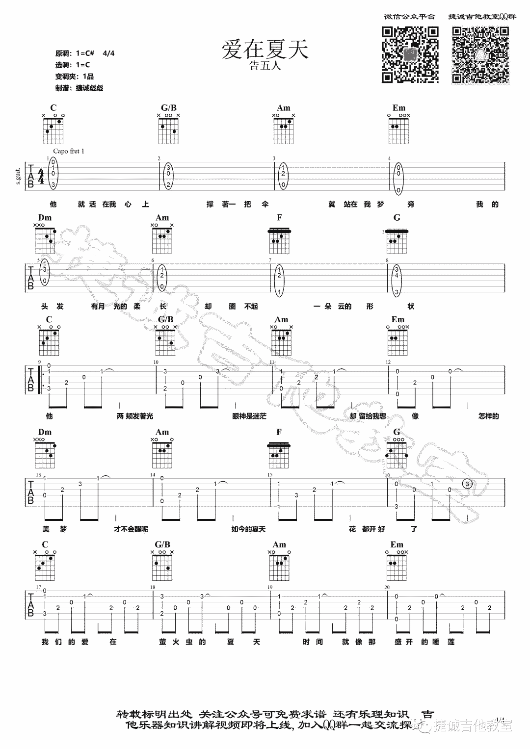 当前位置:琴谱网>吉他弹唱>爱在夏天