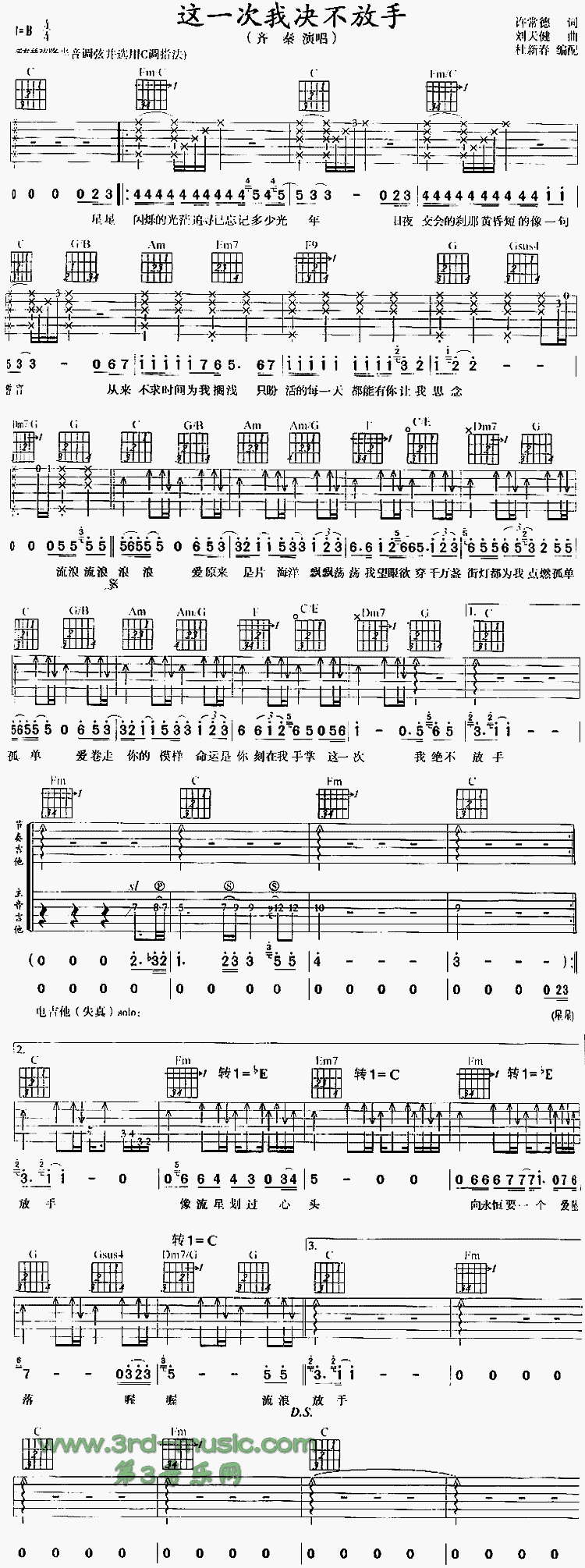 这一次我决不放手吉他谱 - 吉他弹唱谱