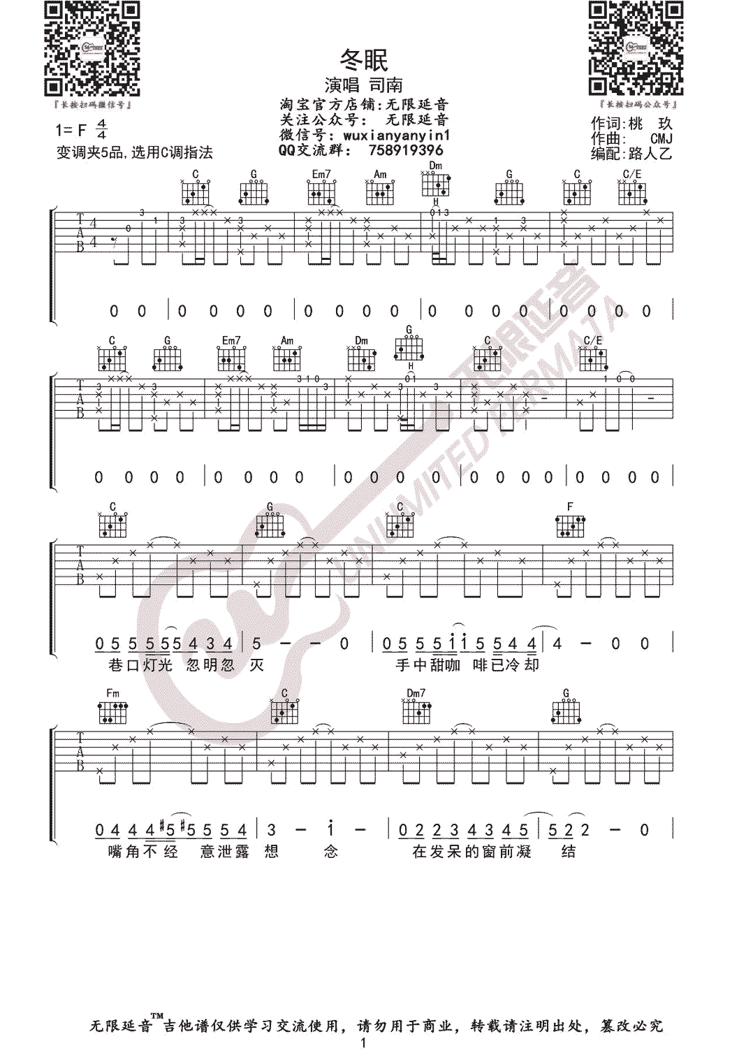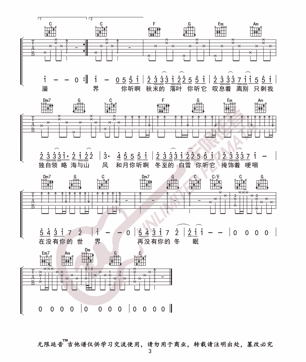 冬眠吉他谱 - 吉他弹唱谱