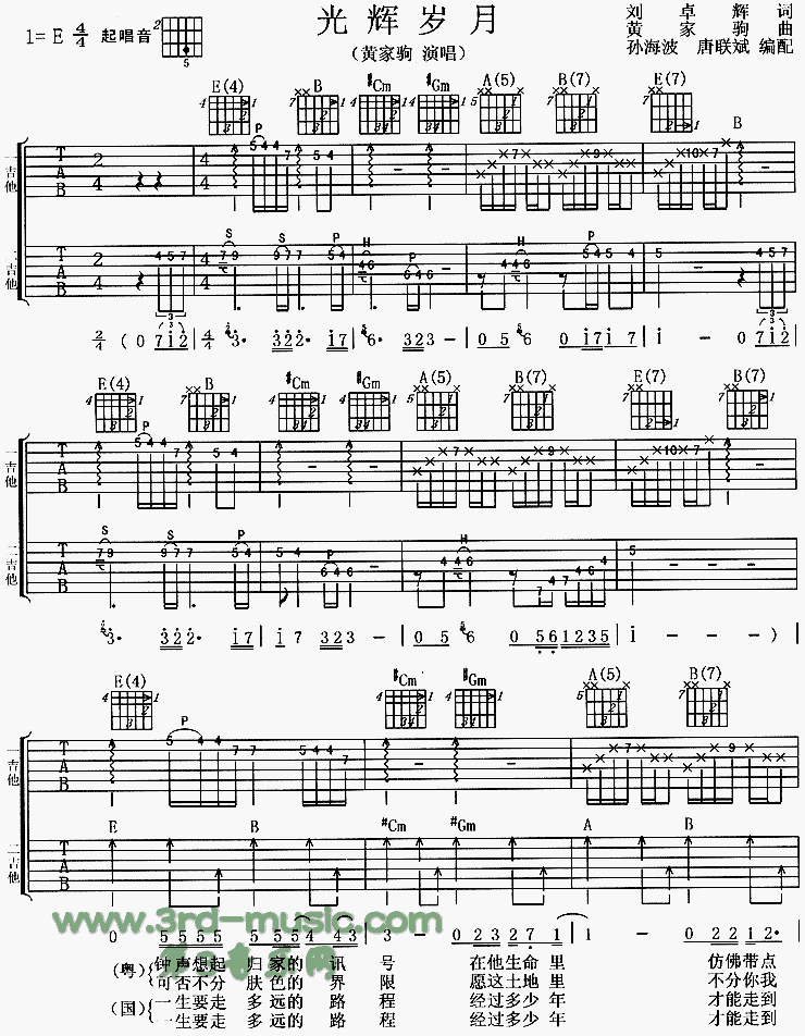 光辉岁月吉他谱 - 吉他弹唱谱