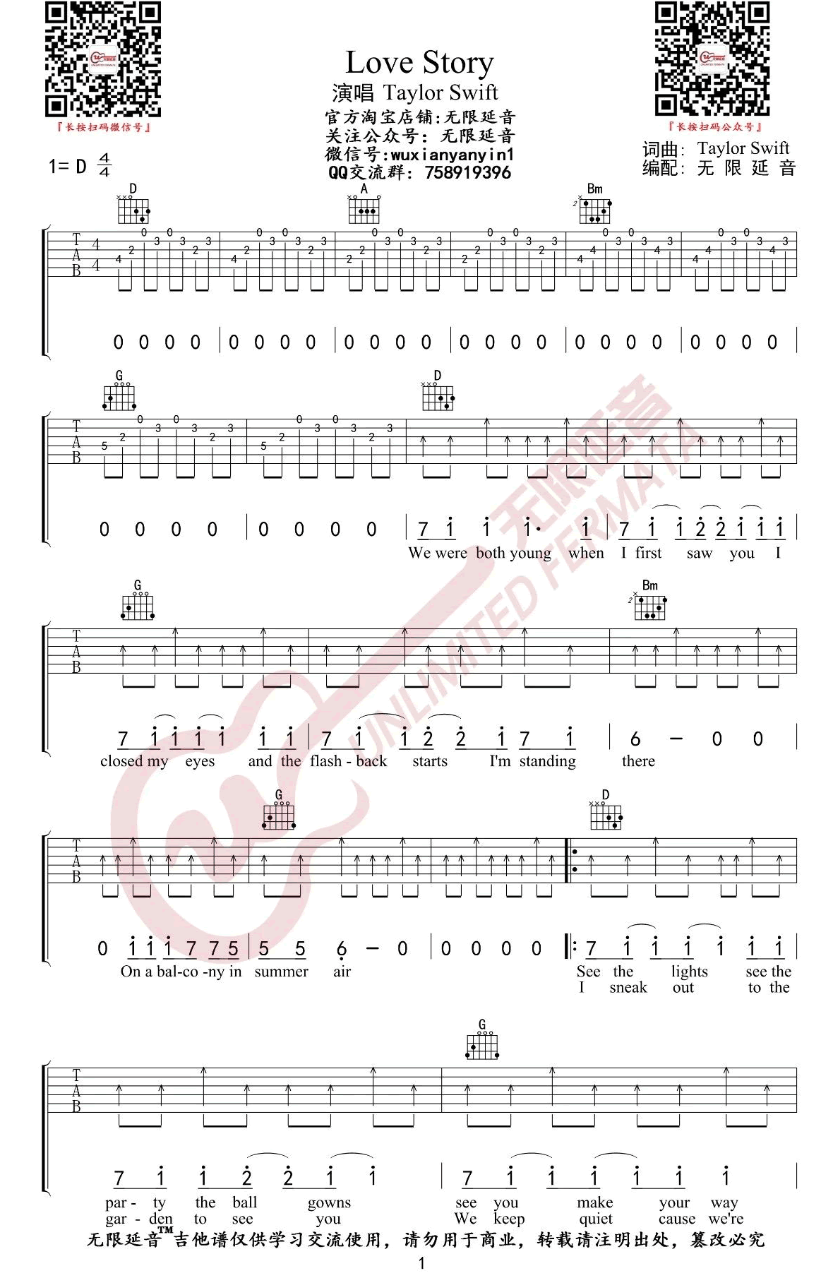 曲谱介绍: 吉他谱介绍:Love-Story吉他谱,Taylor-Swift演唱的一首歌曲,4/4拍的节奏,这首歌曲的原调为D调,这里曲谱采用了D调指法进行编配,演唱时可不夹变调夹,曲谱由琴谱网更新上传,共5张高清图片弹唱吉他谱例,来源于@无限延音编配出品。能够取“爱情故事”这个如此大胆直白的歌名真的需要勇气,但是Taylor这首突破性的单曲在“故事”这方面做得很好,她借此隐喻一段现代的爱情故事,但却能把控有度,不会变得矫情。