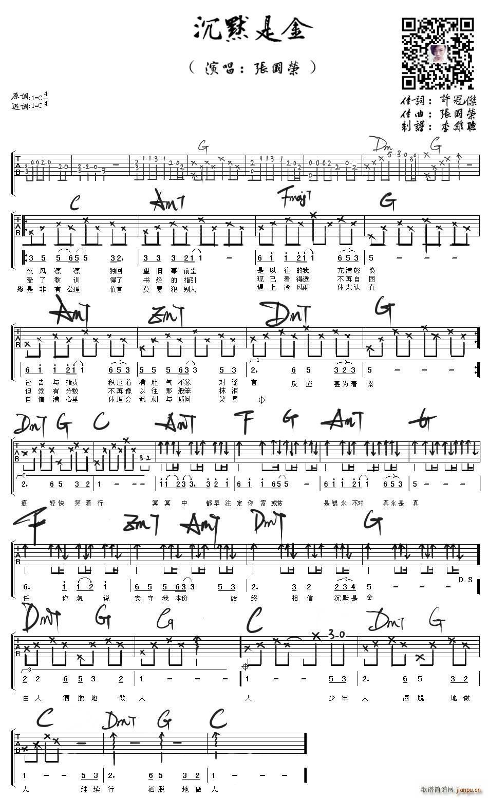 当前位置:琴谱网>吉他弹唱>沉默是金
