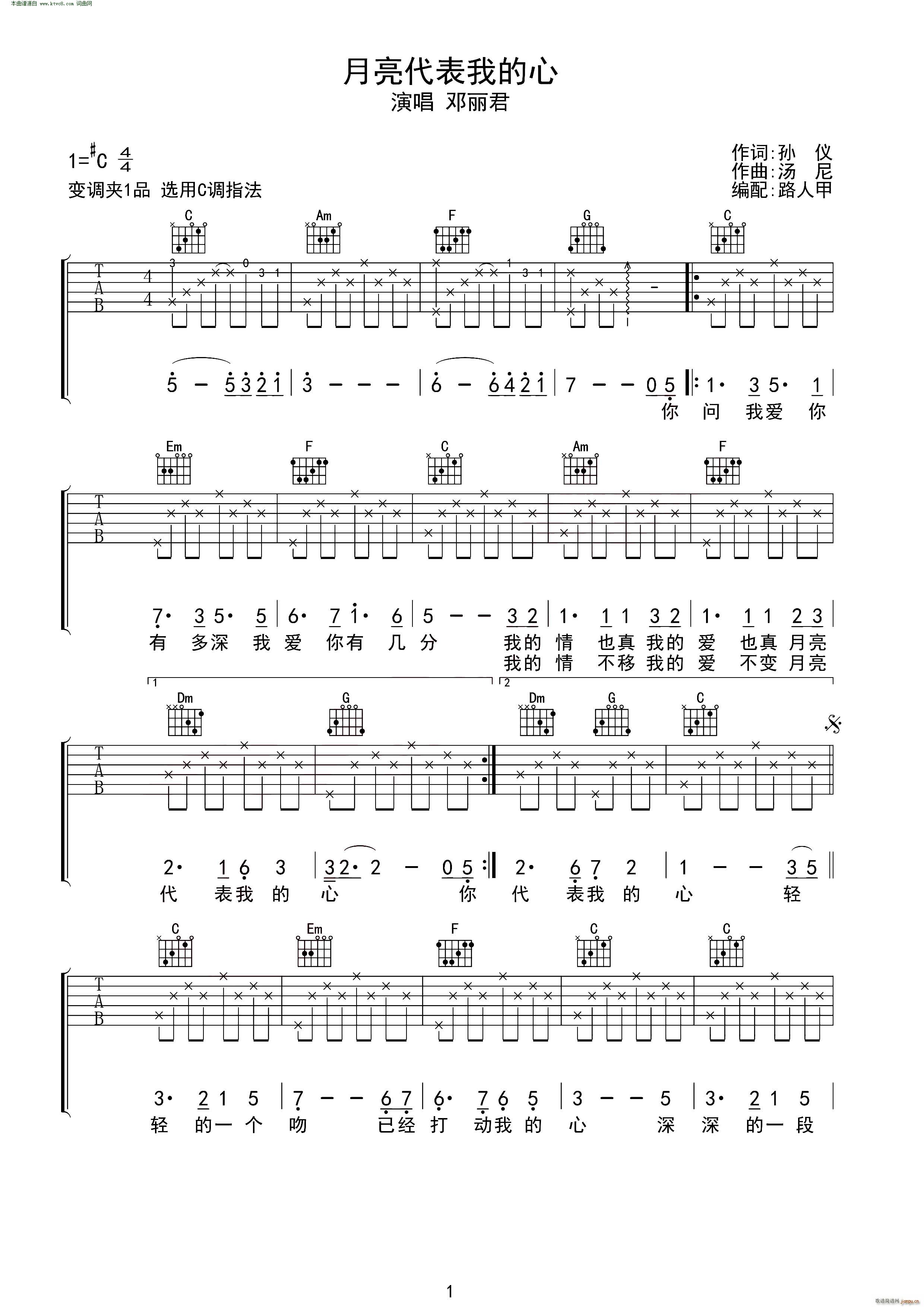 当前位置:琴谱网>吉他弹唱>月亮代表我的心