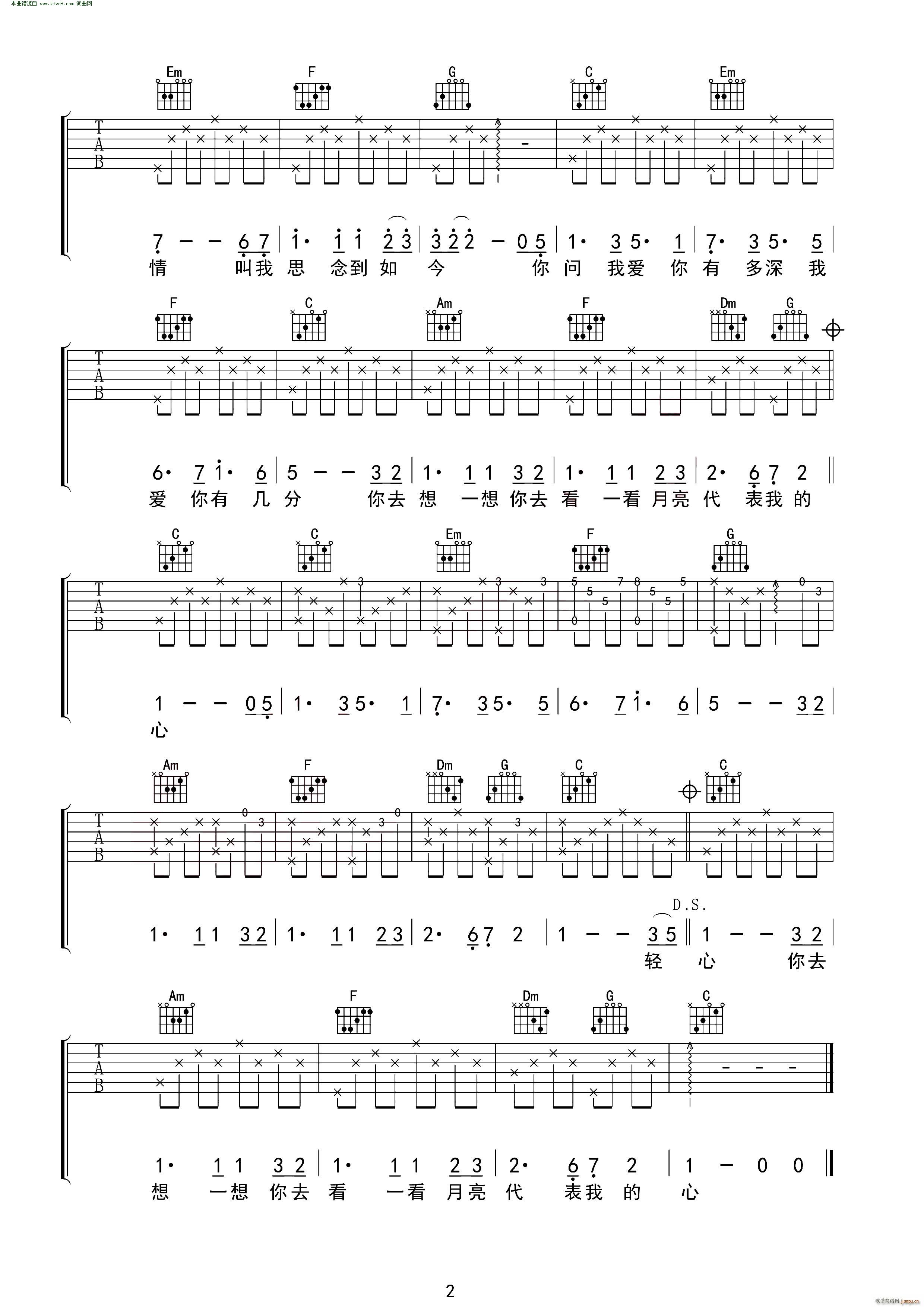 月亮代表我的心吉他谱 - 吉他弹唱谱