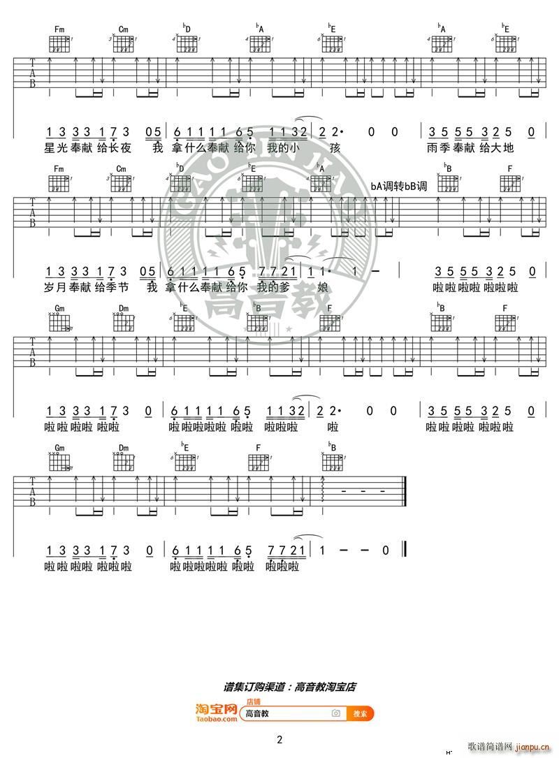 奉献吉他谱 - 吉他弹唱谱