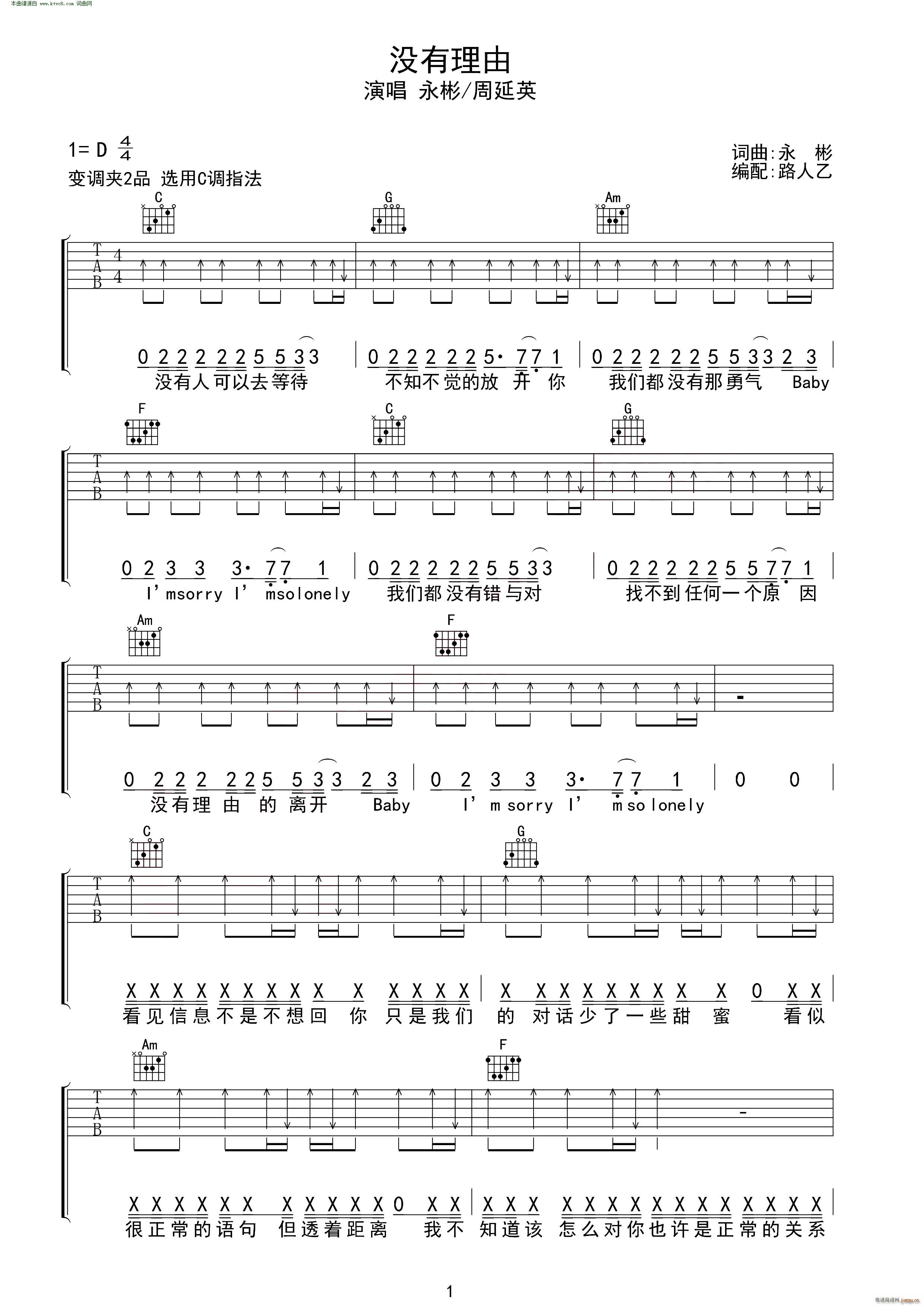 没有理由吉他谱 - 吉他弹唱谱