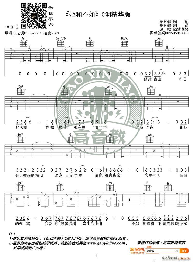 当前位置:琴谱网>吉他弹唱>姬和不如