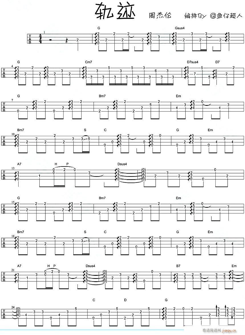 轨迹吉他谱 - 吉他弹唱谱
