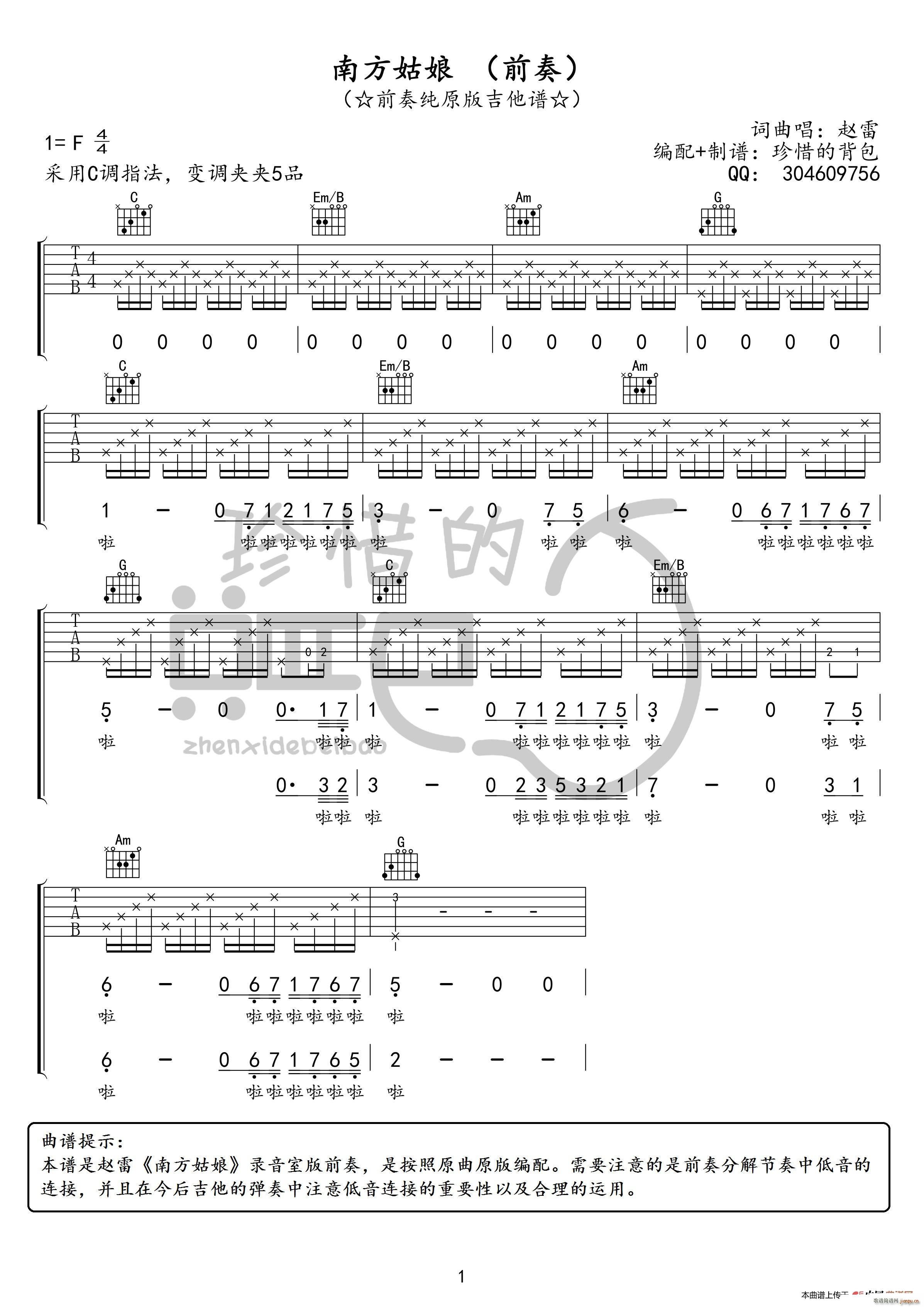 当前位置:琴谱网>吉他弹唱>南方姑娘