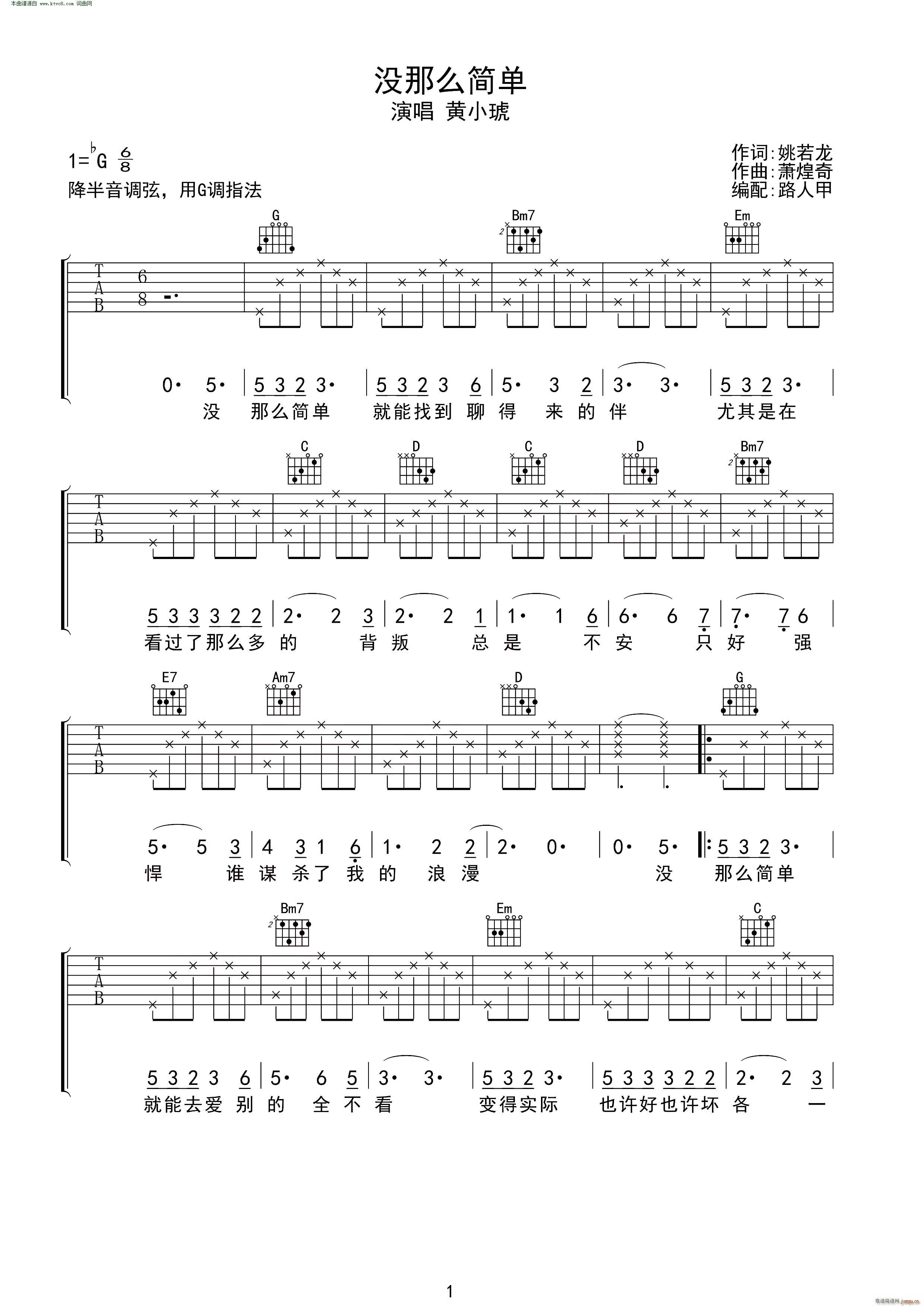 没那么简单吉他谱 - 吉他弹唱谱