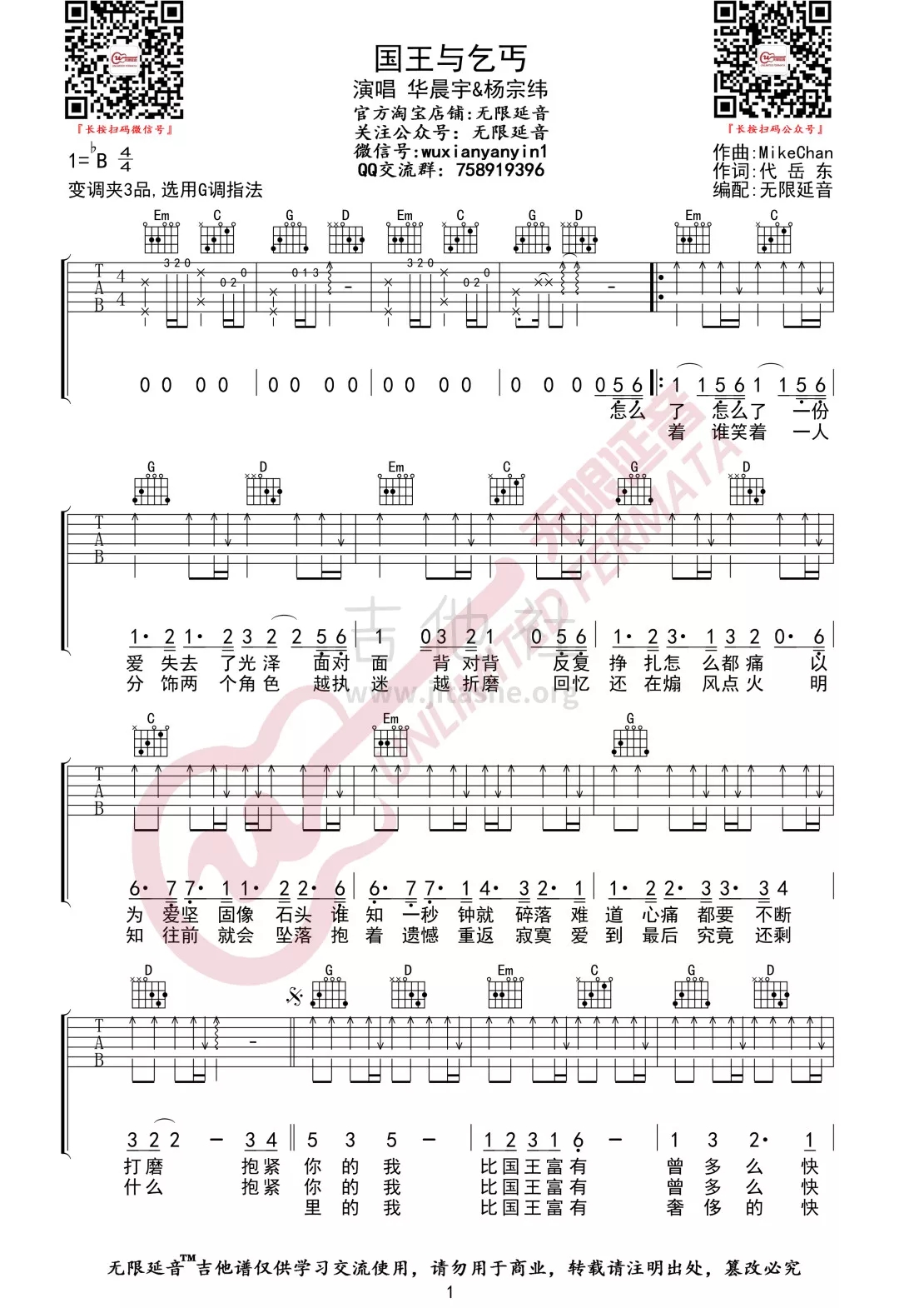 国王与乞丐吉他谱 - 吉他弹唱谱