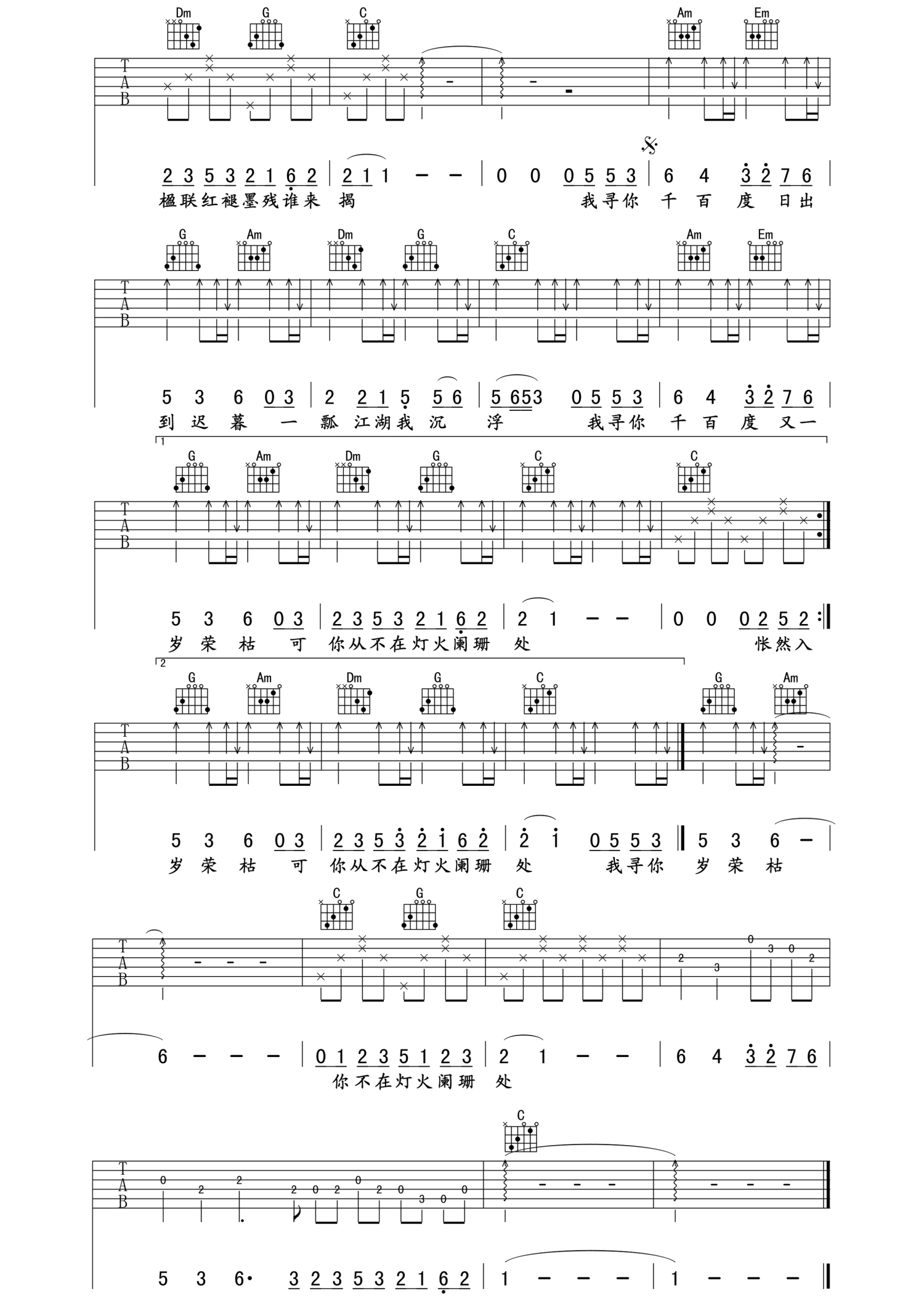 当前位置:琴谱网>吉他弹唱>千百度