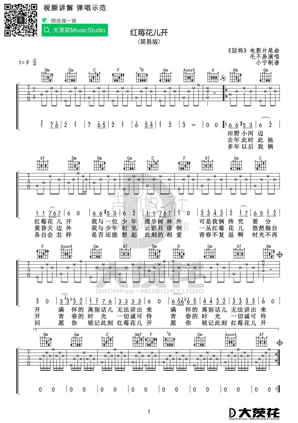 红莓花儿开吉他谱 - 吉他弹唱谱