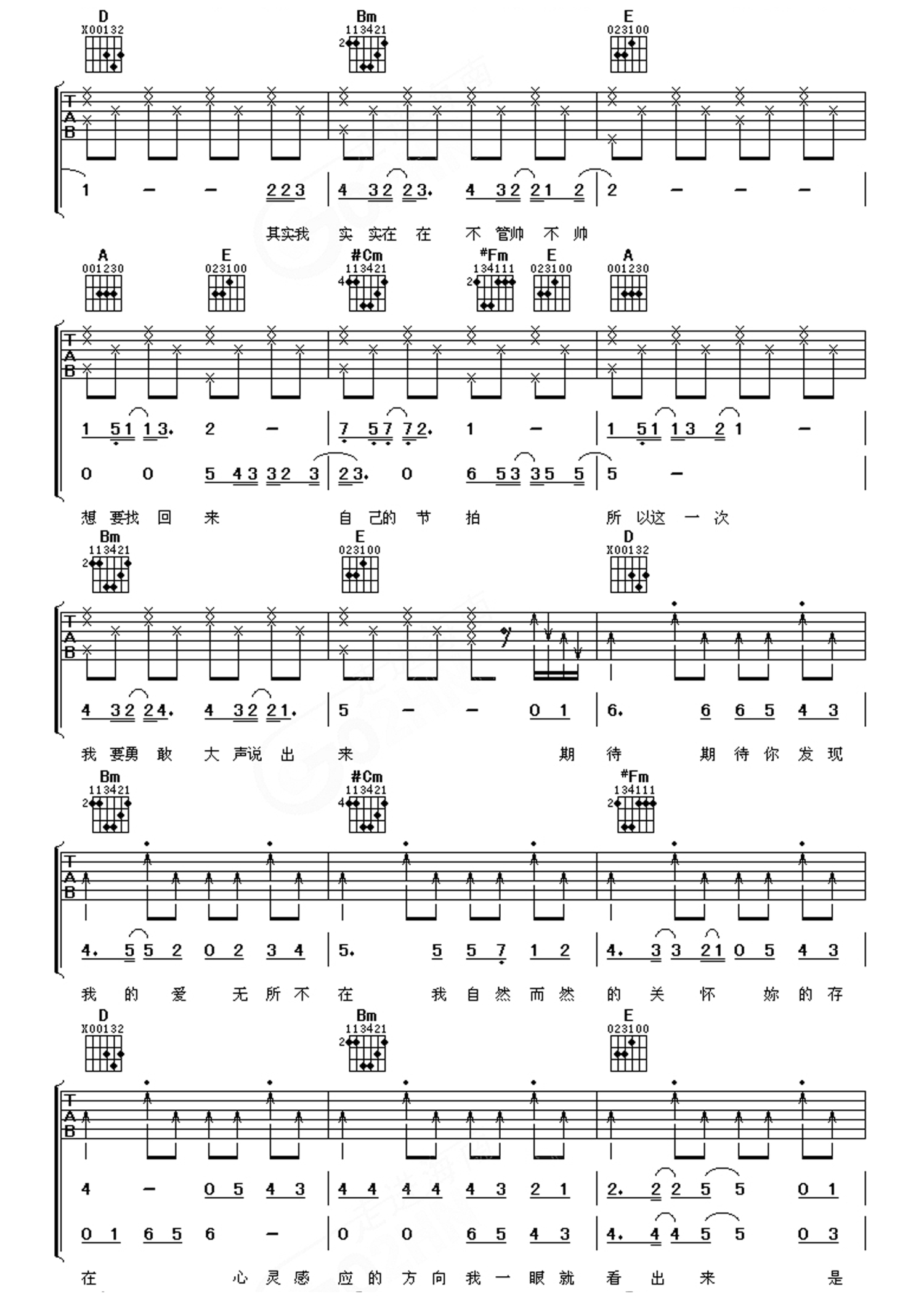 曲谱介绍:   期待爱简谱歌词    词:林怡凤/许环良  曲:林俊杰  编曲:蔡政勋  男:MyLife一直在等待  空荡的口袋  想在里面放一份爱  Why总是被打败  真的好无奈  其实我实实在在  不管帅不帅  男:想要找回来  女:想要找回来  男:自己的节拍  女:自己的节拍  男:所以这一次  合:我要勇敢大声说出来  合:期待期待你发现我的爱  无所不在我自然而然的关怀  男:你的存在  女:你的存在  男:心灵感应的方向  合:我一眼就看出来  是因为爱  合:我猜你早已发现我的爱  绕几个弯靠越近越明白  男:不要走开  女:不要走开  男:幸福的开始就是  合:放手去爱  男:想要找回来  女:想要找回来  男:自己的节拍  女:自己的节拍  男:所以这一次  合:我要勇敢大声说出来  合:期待期待你发现我的爱  无所不在我自然而然的关怀  男:你的存在  女:你的存在  男:心灵感应的方向  合:我一眼就看出来  是因为爱  合:我猜你早已发现我的爱  绕几个弯靠越近越明白  男:不要走开  女:不要走开  男:幸福的开始就是  合:放手去爱  合:幸福的开始就是放手去爱