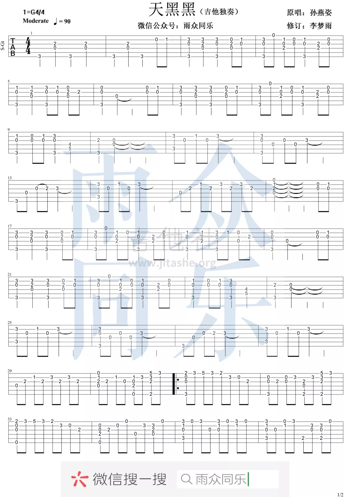 天黑黑吉他谱 - 吉他弹唱谱