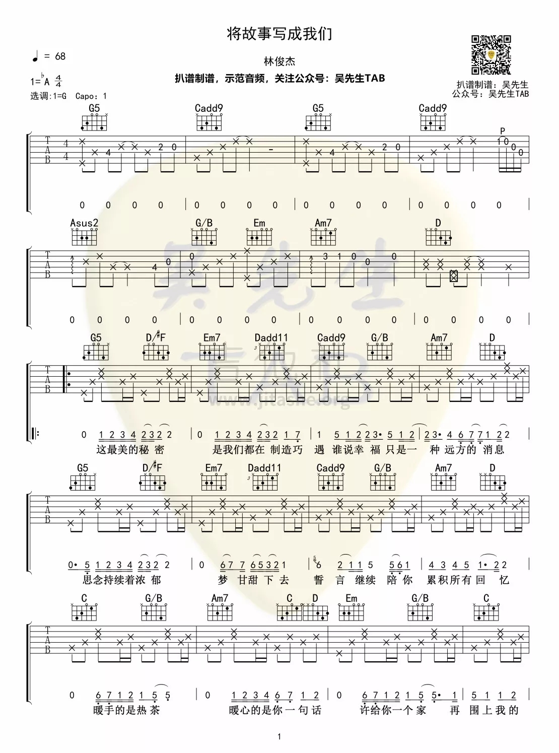 将故事写成我们吉他谱 - 吉他弹唱谱