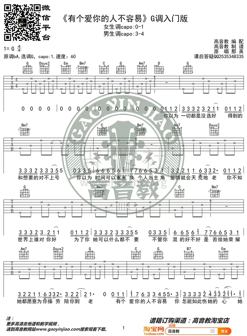 有个爱你的人不容易吉他谱 - 吉他弹唱谱