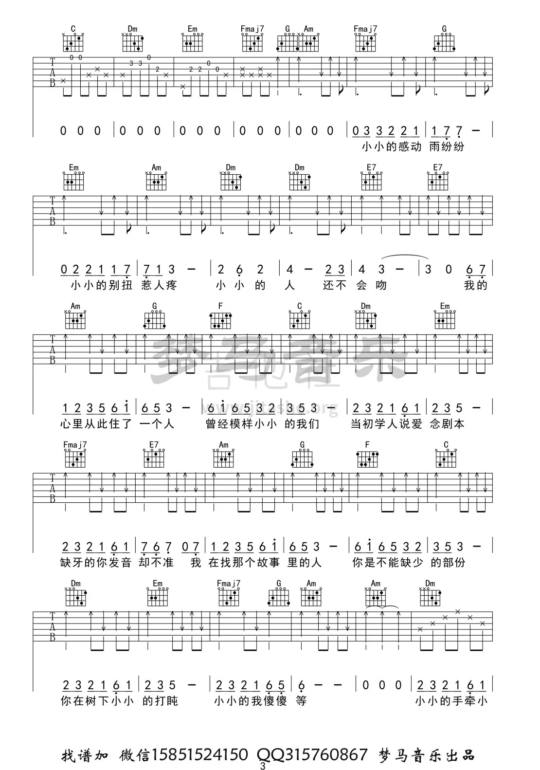 小小吉他谱 - 吉他弹唱谱