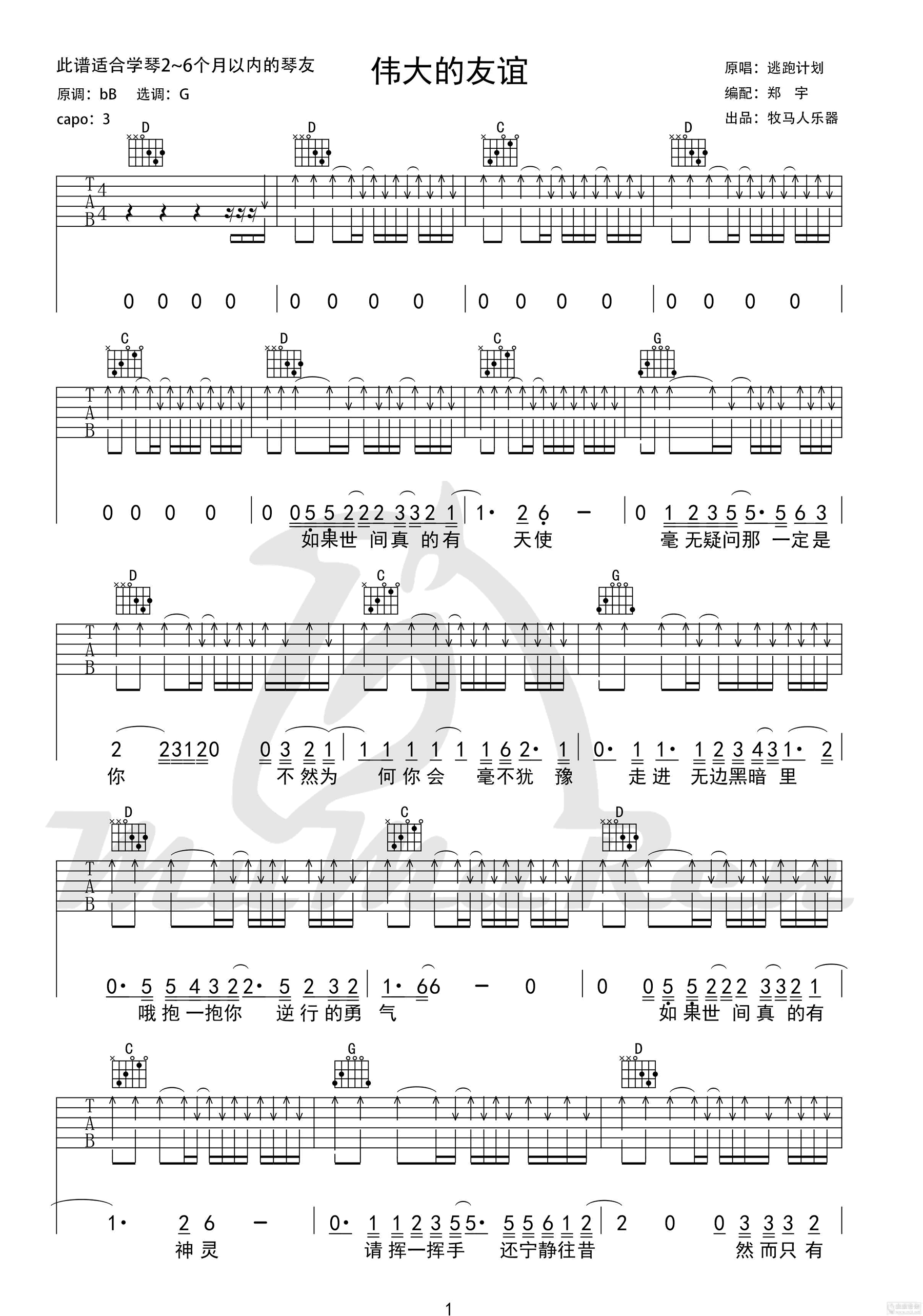 伟大的友谊吉他谱 - 吉他弹唱谱