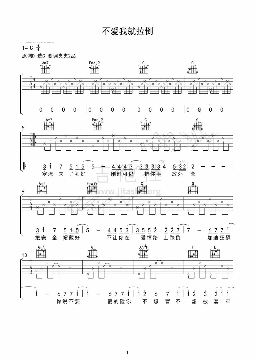 不爱我就拉倒吉他谱 - 吉他弹唱谱