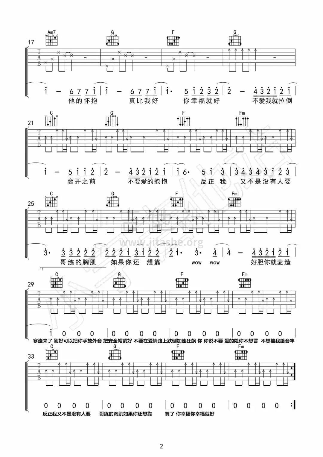 曲谱介绍: 《不爱我就拉倒》吉他弹唱谱,共有2张高清图谱,免翻页排版设计。