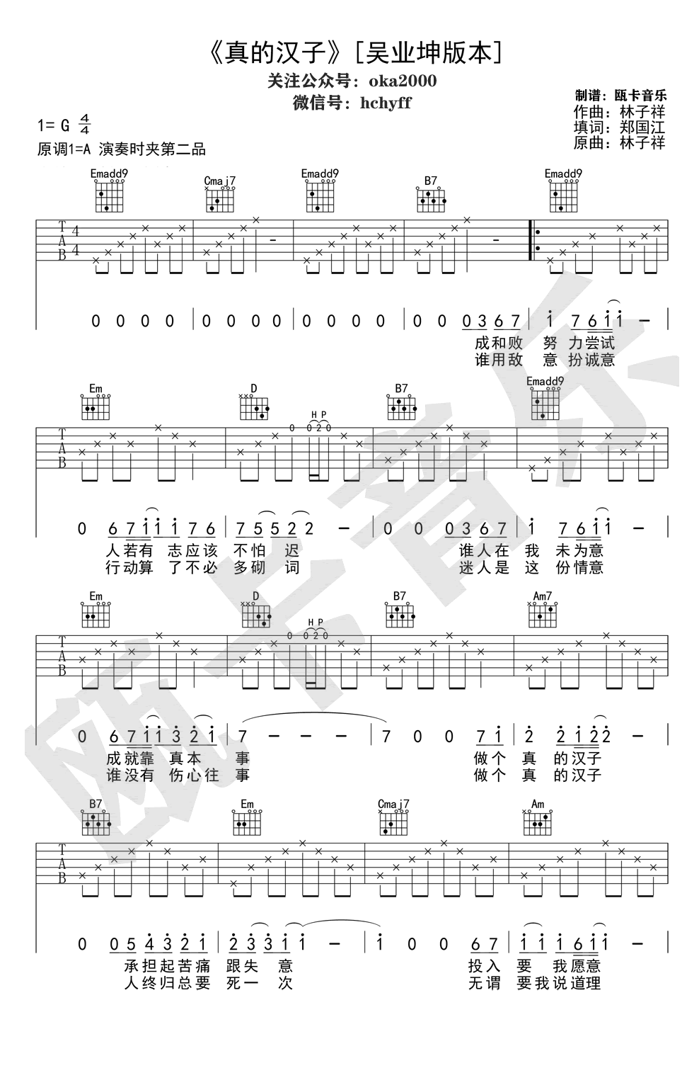 真的汉子吉他谱 - 吉他弹唱谱