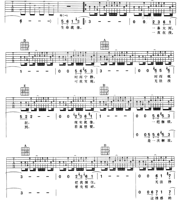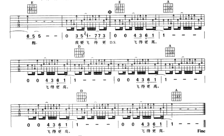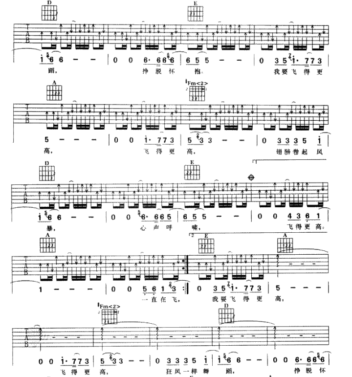 曲谱介绍: 汪峰《飞得更高》吉他弹唱谱,共有5张高清图谱。