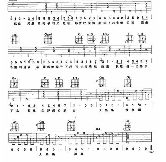 当前位置:琴谱网>吉他弹唱>天黑黑