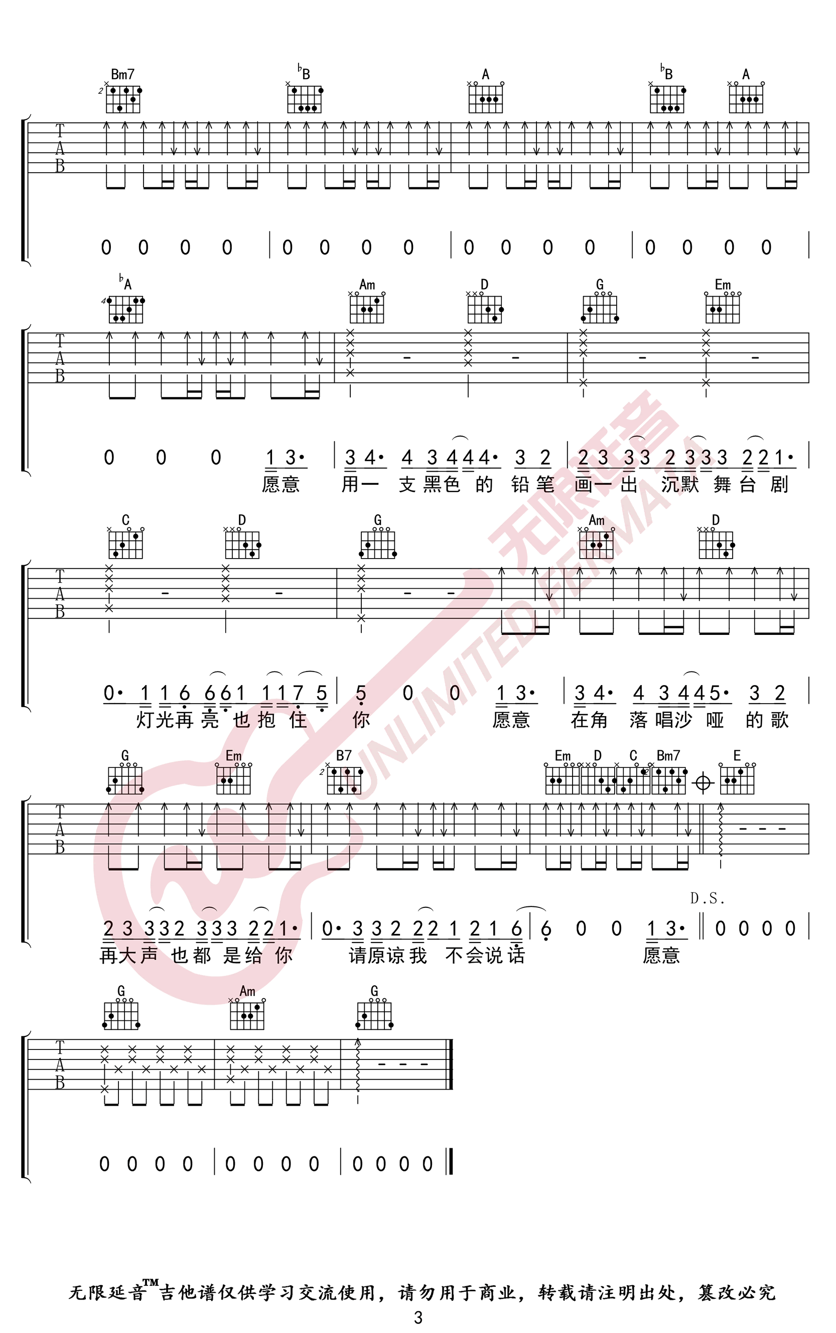 曲谱介绍: 《不要说话》吉他谱,陈奕迅演唱的一首经典国语歌曲,选用G调指法,变调夹夹四品。不要说话六线谱,三张弹唱六线谱,无限延音编配出品,吉他谱上传更新。