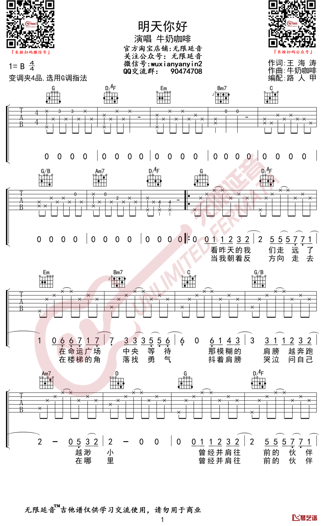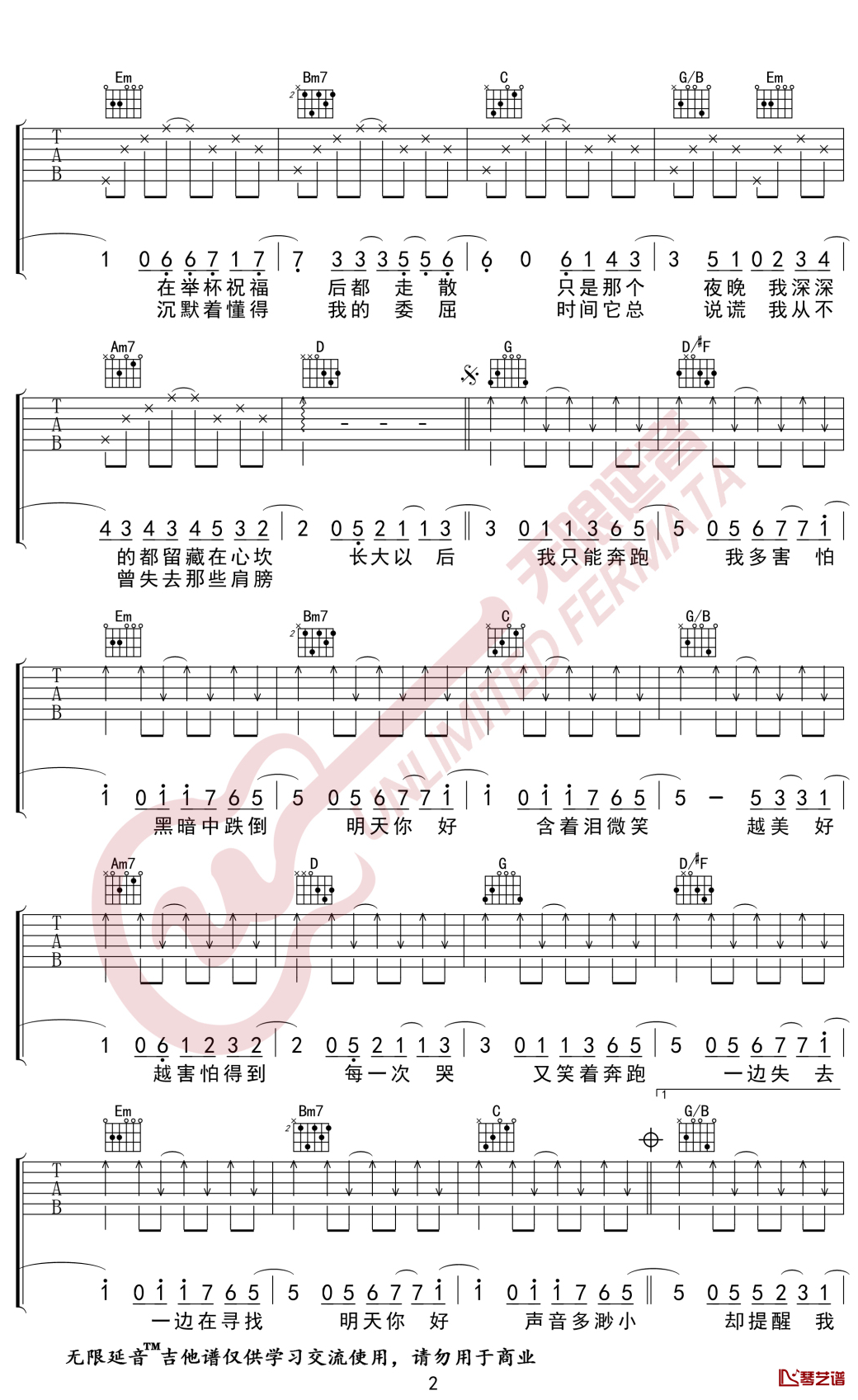 吉他弹唱G调来源:六线谱-G调弹唱谱-无限延音234 浏览2024-02-18 11:51发布图谱共3页