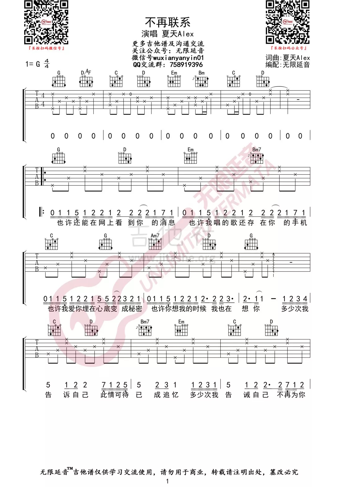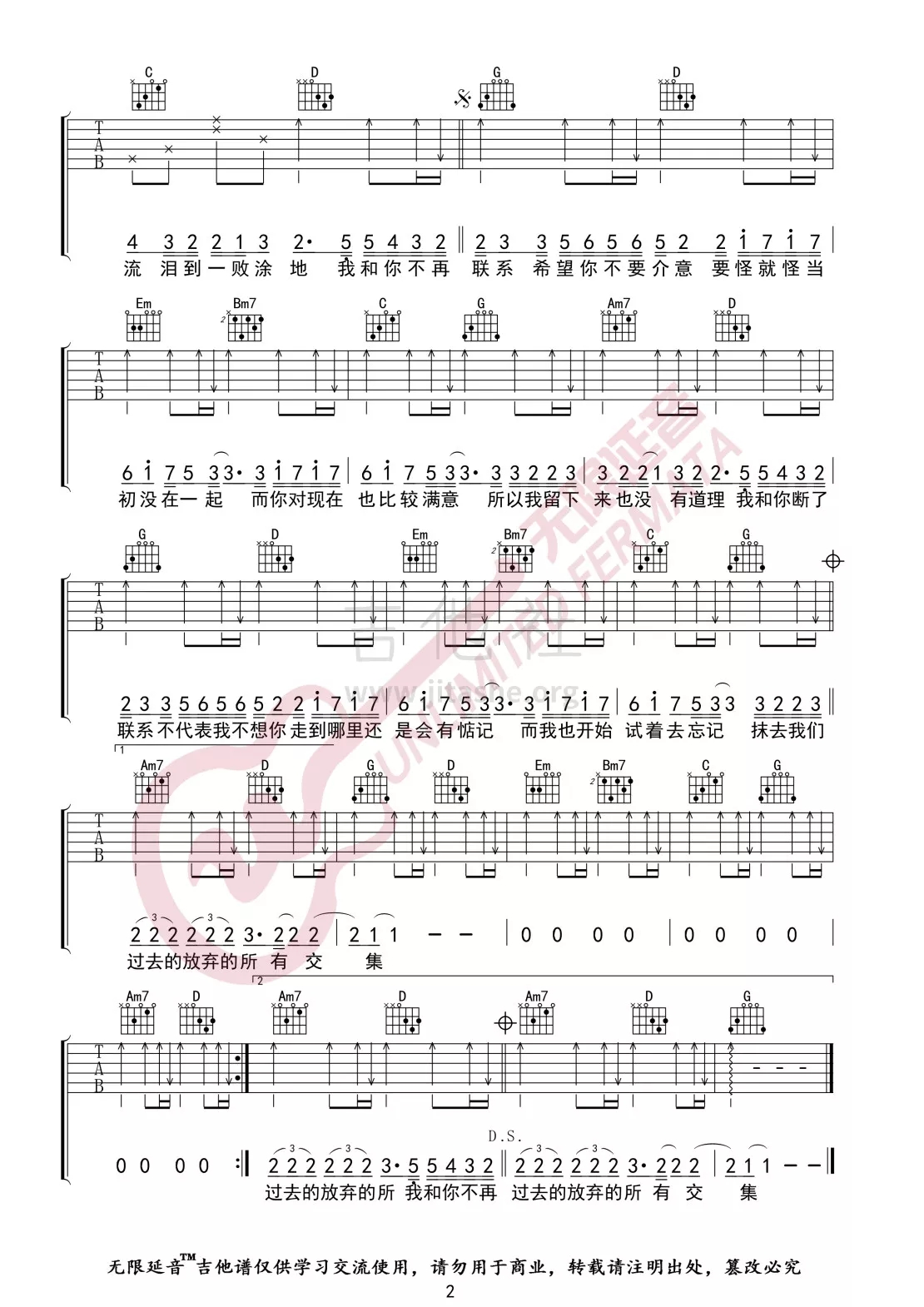 不再联系吉他谱 - 吉他弹唱谱