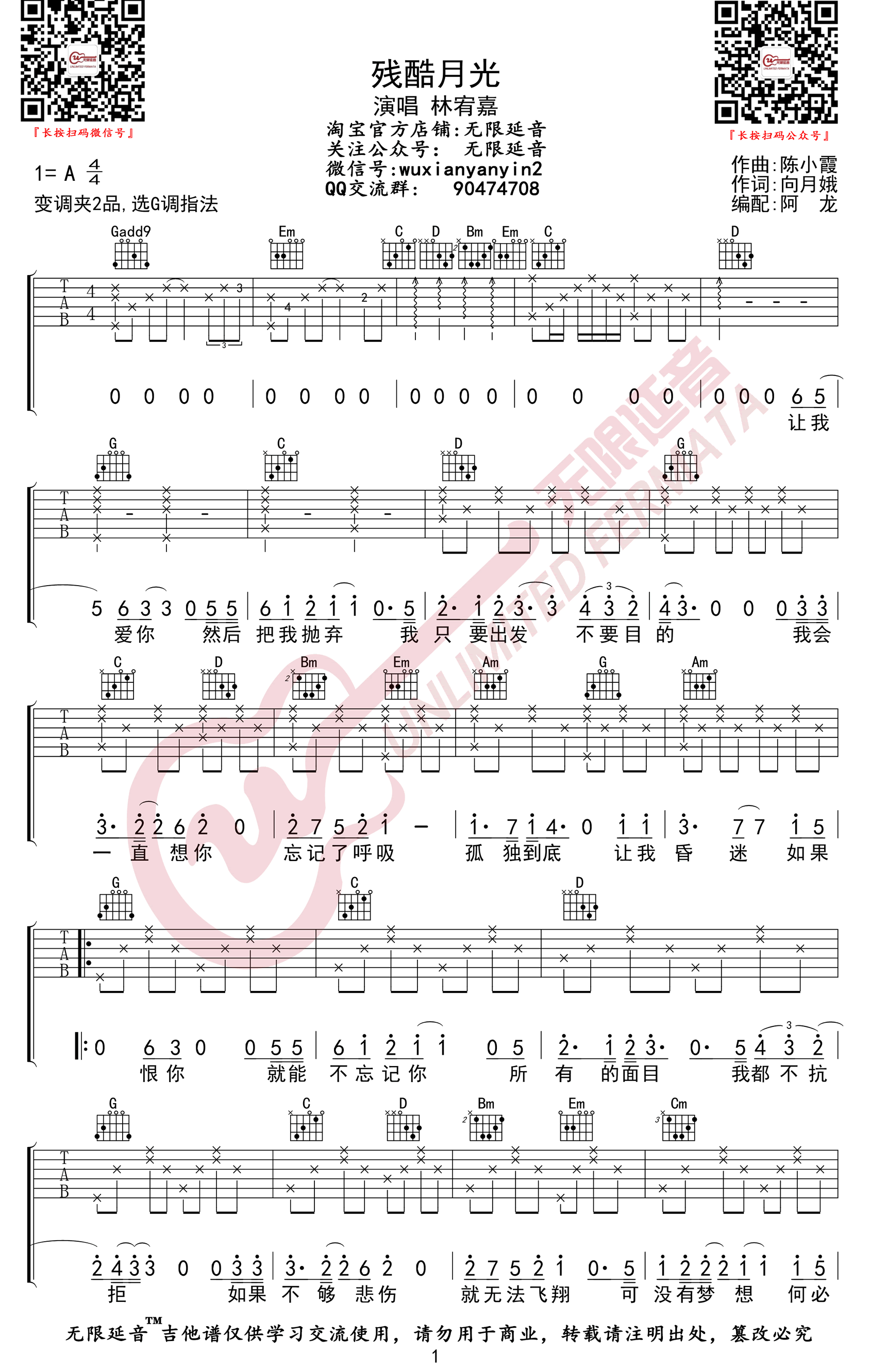 残酷月光吉他谱 - 林宥嘉 - 吉他弹唱谱