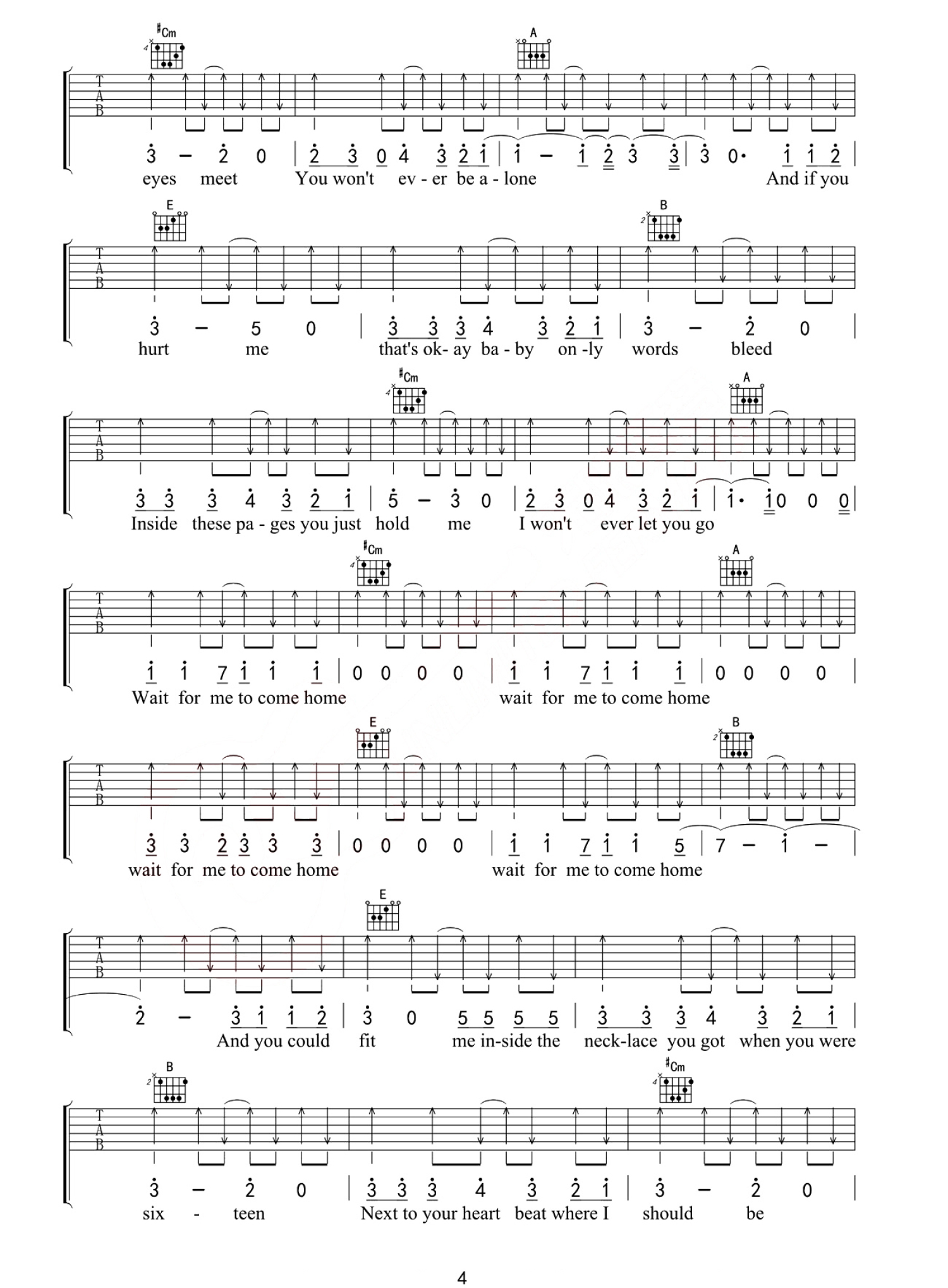 吉他弹唱E调来源:无限延音5542 浏览2019-12-20 17:46发布图谱共5页