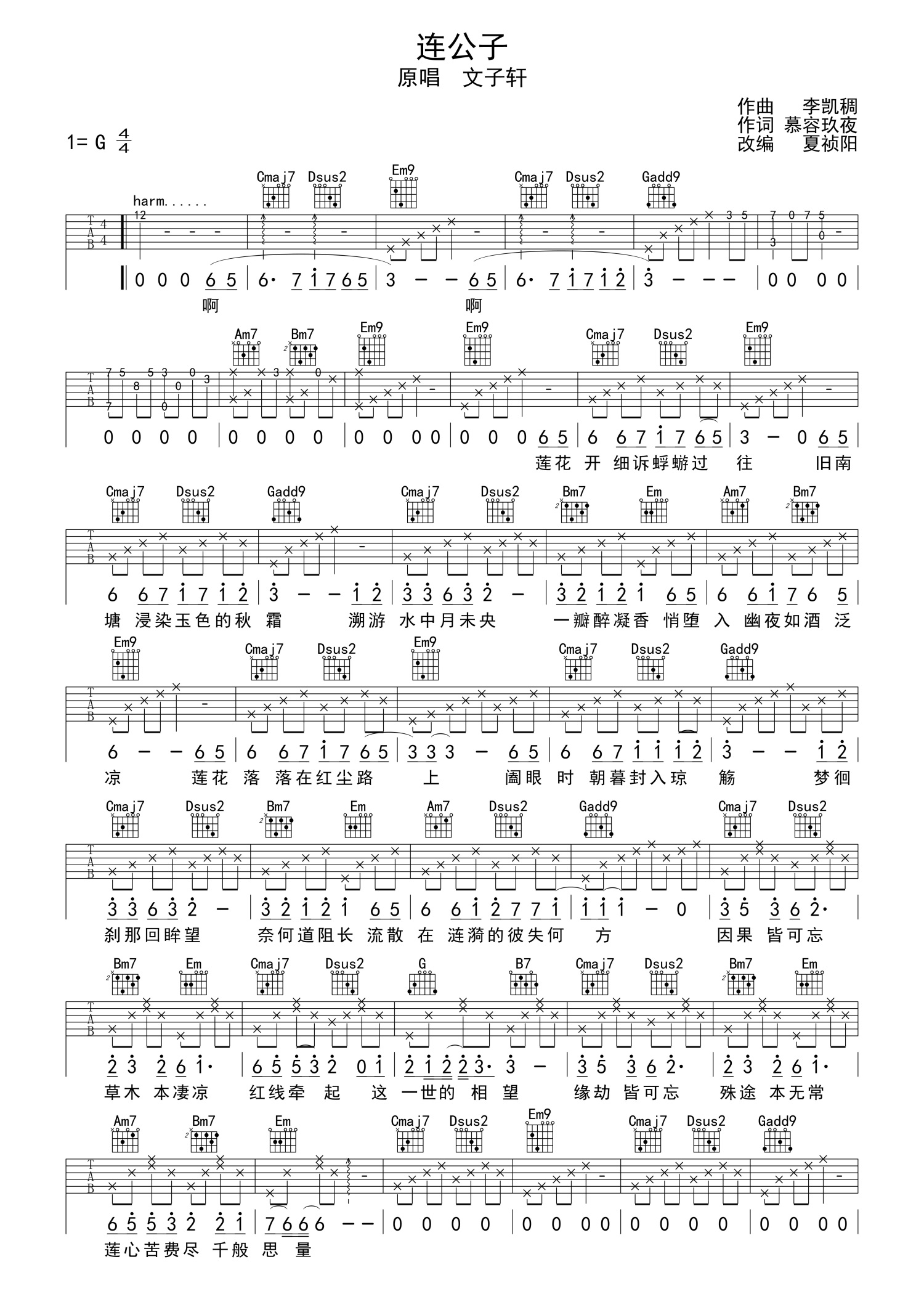 曲谱介绍: 文子轩《公子》吉他谱_G调吉他弹唱谱