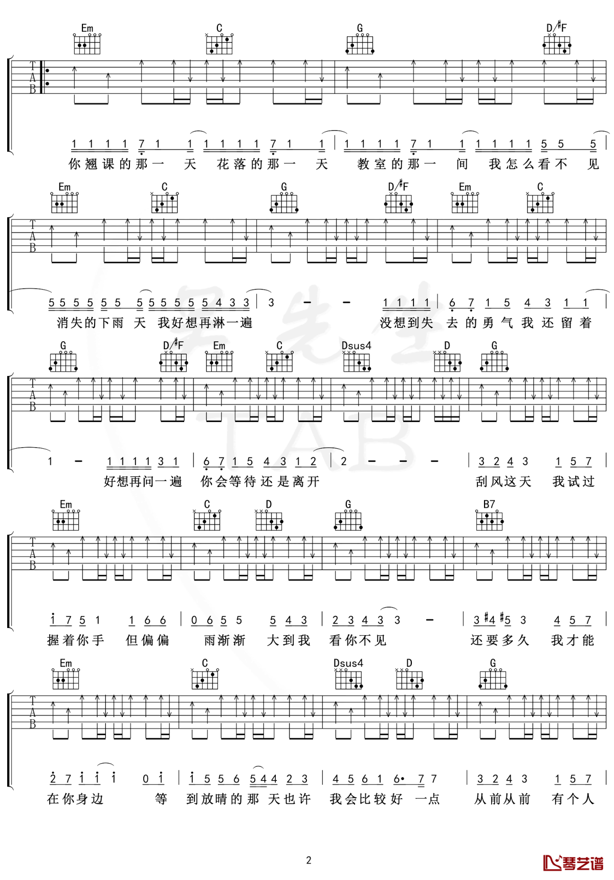 当前位置:琴谱网>吉他弹唱>晴天